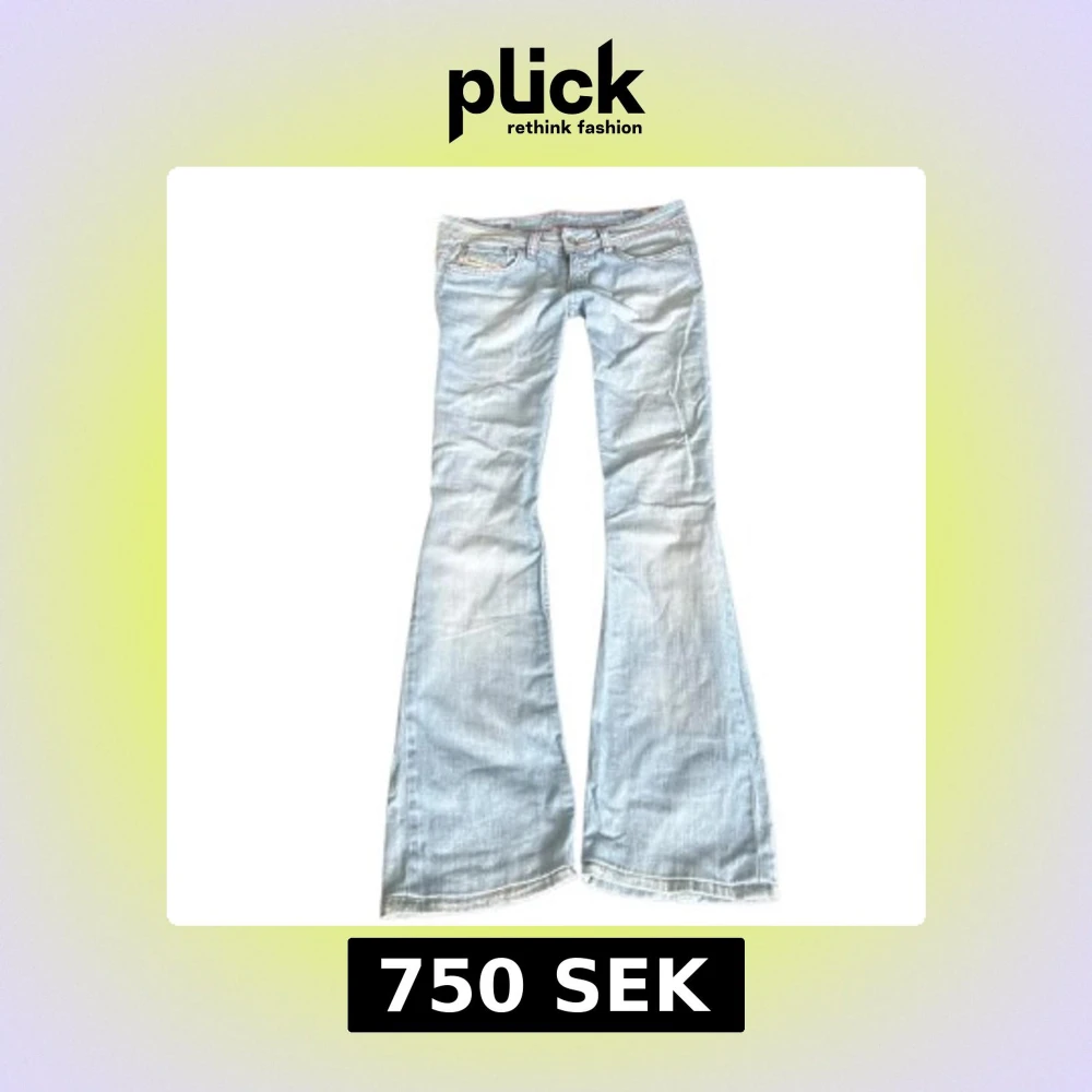 Sååååå sjukt snygga vintage jeans från diesel! 💓 Superlågmidjade och så snygg färg! Midjemått: 38 cm Innebenslängd: 76 cm. Sytt in resorband men super lätt att ta bort om man inte vill ha!!💕