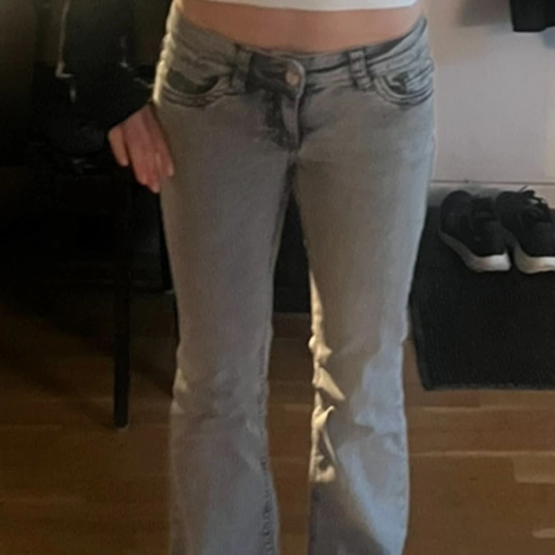 Snygga grå jeans med bootcut passform och låg midja. Jeansen är köpta i våras men bara använda en gång, alltså inga defekter osv! Kontakta för bilder på jeansen om ni vill !