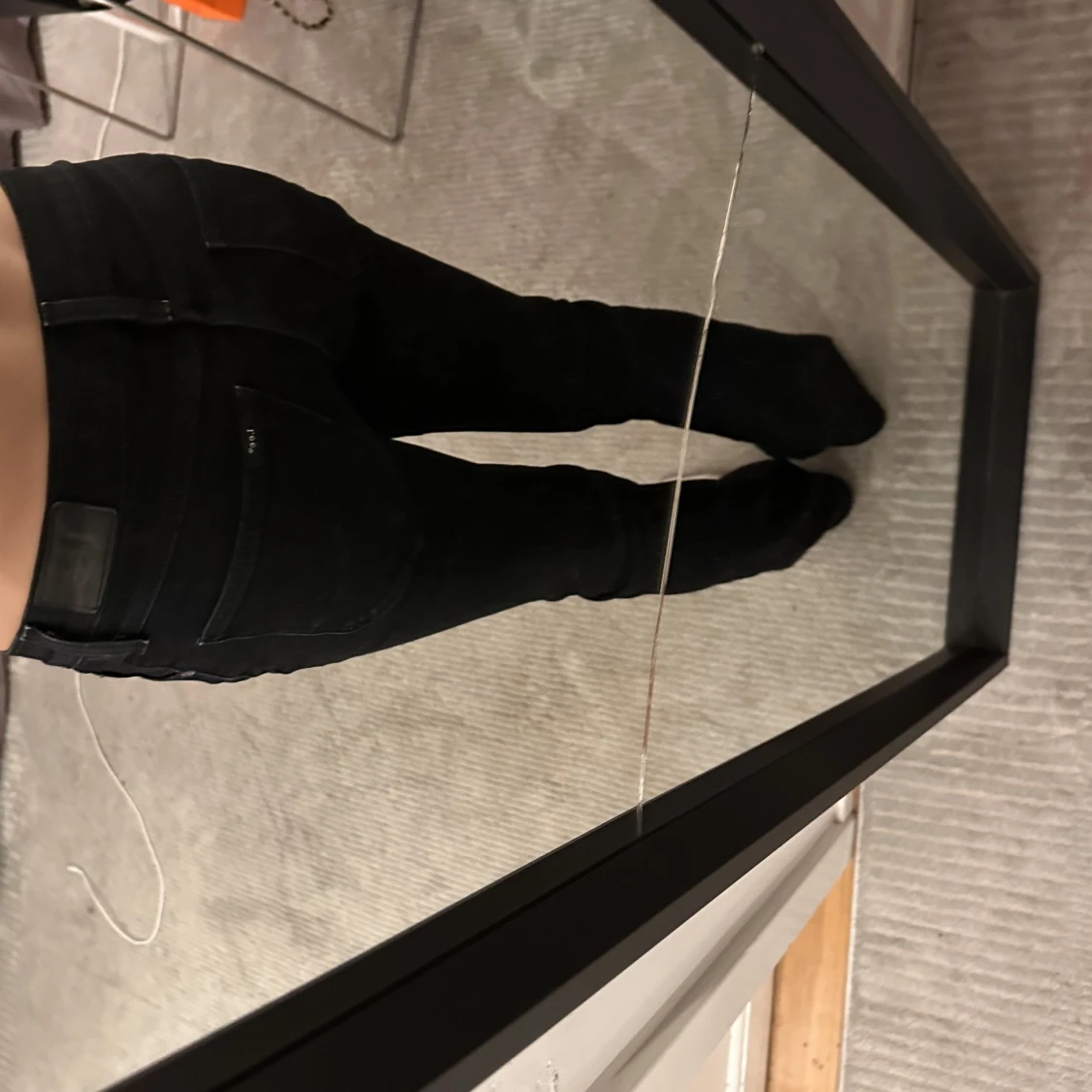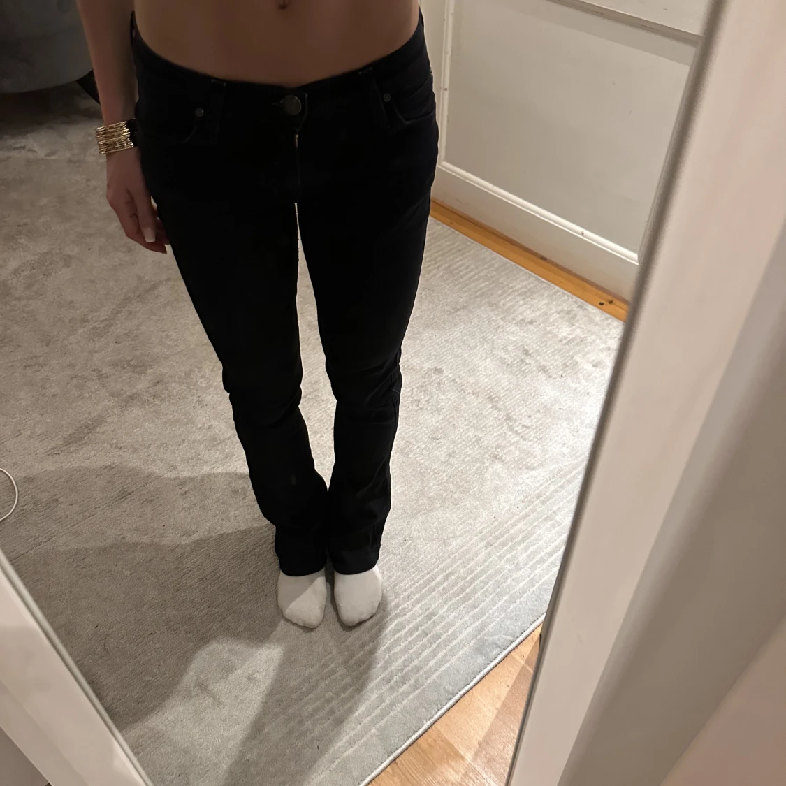 Perfekta svarta utsvängda lågmidjade jeansen!😍 Midjemått: 36 cm Innerbenslängd: 76 cm Jag är 161 cm❤️