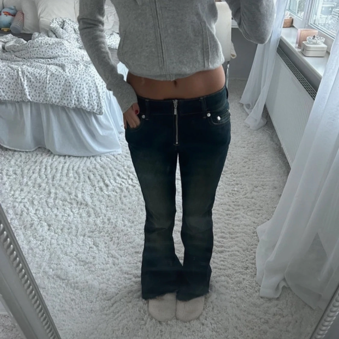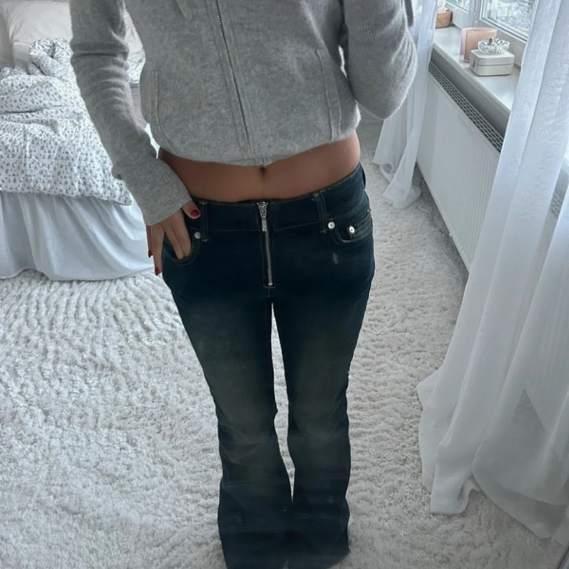 Såå snygga och coola jeans från Weekday som inte säljs längre❣️De är lågmidjade och har en nice detalj med dragkedja som gylf! Storlek: 24