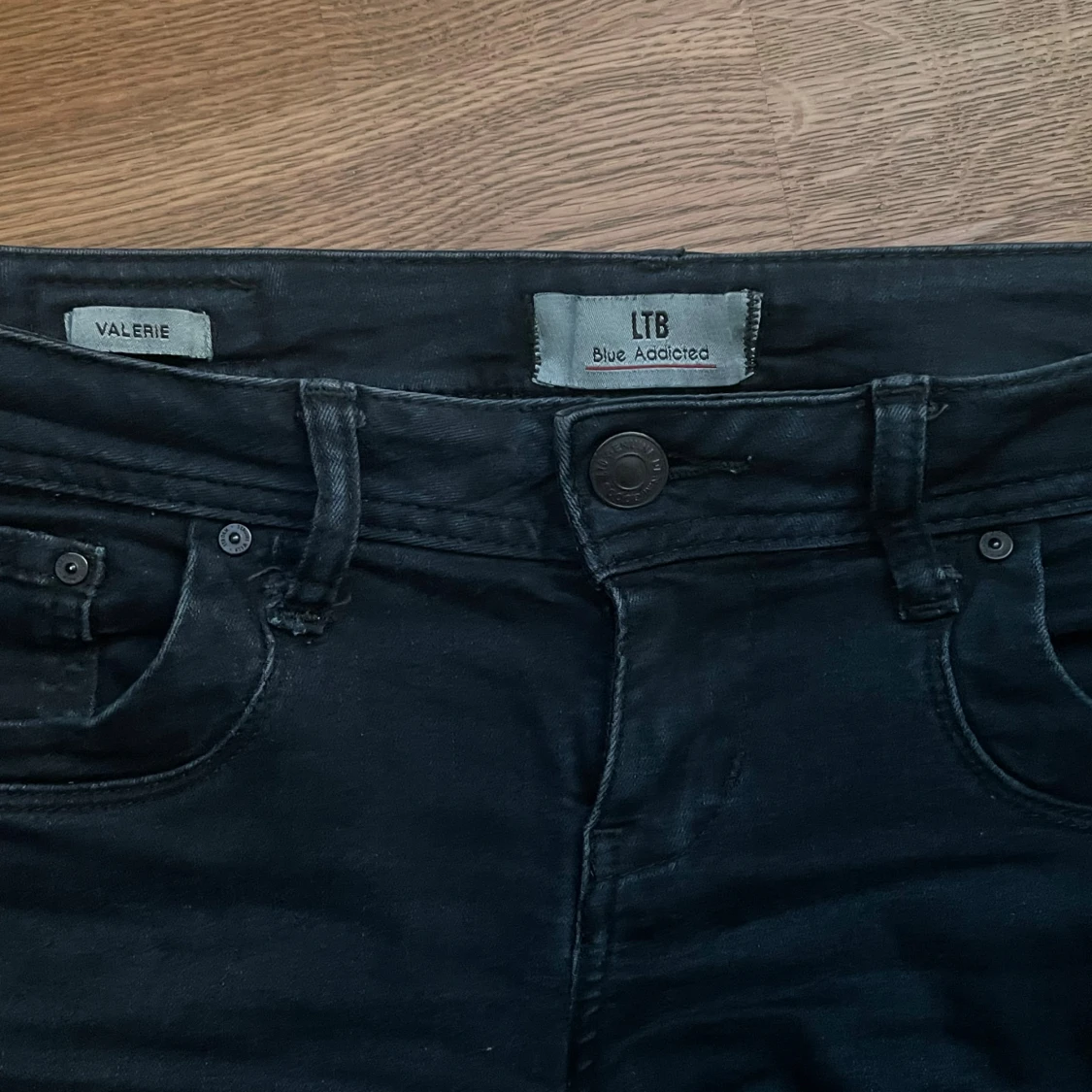 Supersnygga trendiga jeans från Ltb! Storleken är 27/30, men insydda i midjan så de sitter som 27 innan de töjts ut eller 26 efter de töjts ut. Borde kunna gå att sprätta upp om man skulle vilja det.Passar på mig som är 160☺️