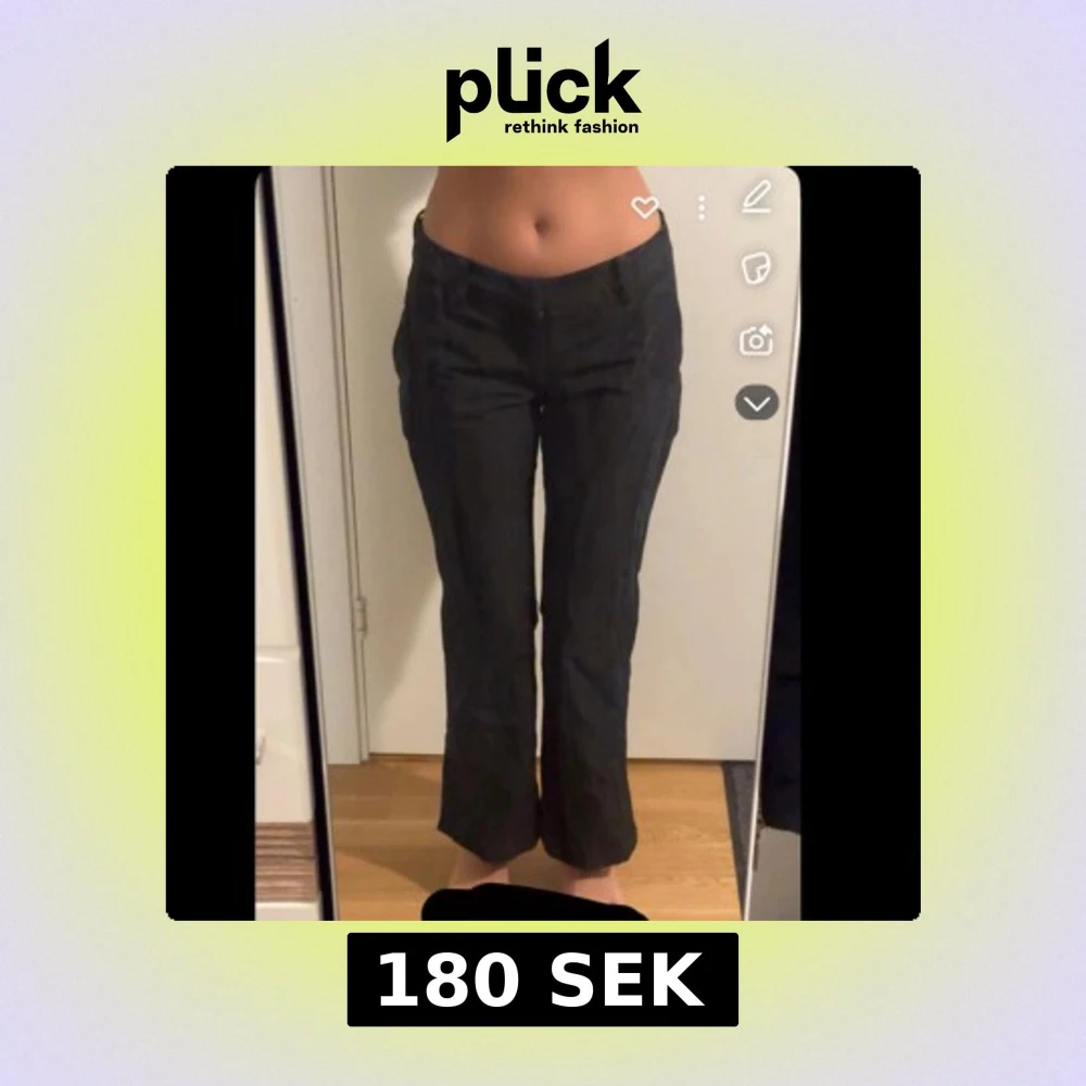 As snygga kostym byxor som är low waist med slits längs byx kanten😍 Använd fåtal gånger, bra skick! storlek 36 men passar även 34. Jag är 160 cm för referens🥰🌸Sitter som en smäck!!!!😍
