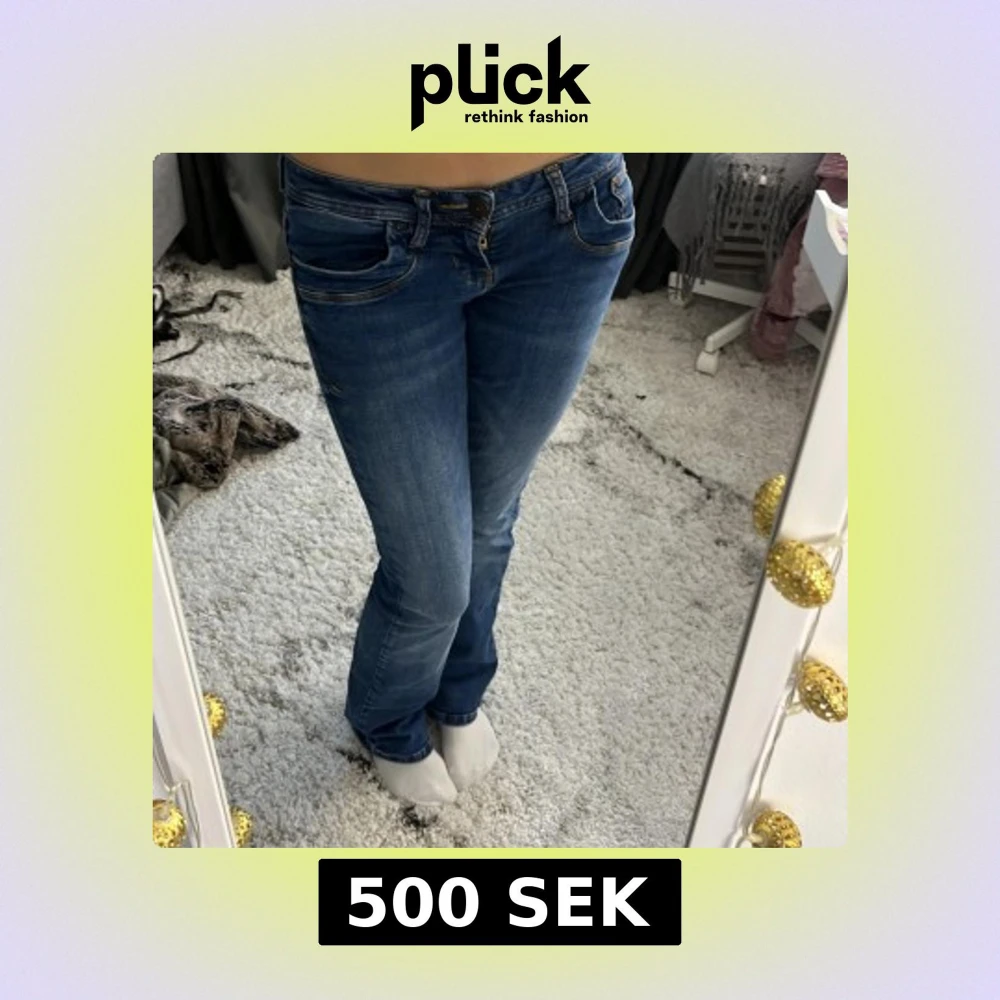 Säljer ett par snygga blå bootcut jeans från LTB. De är i jätte bra sick och har inga slitningar. Säljer pågrund av att de inte längre kommer till användning