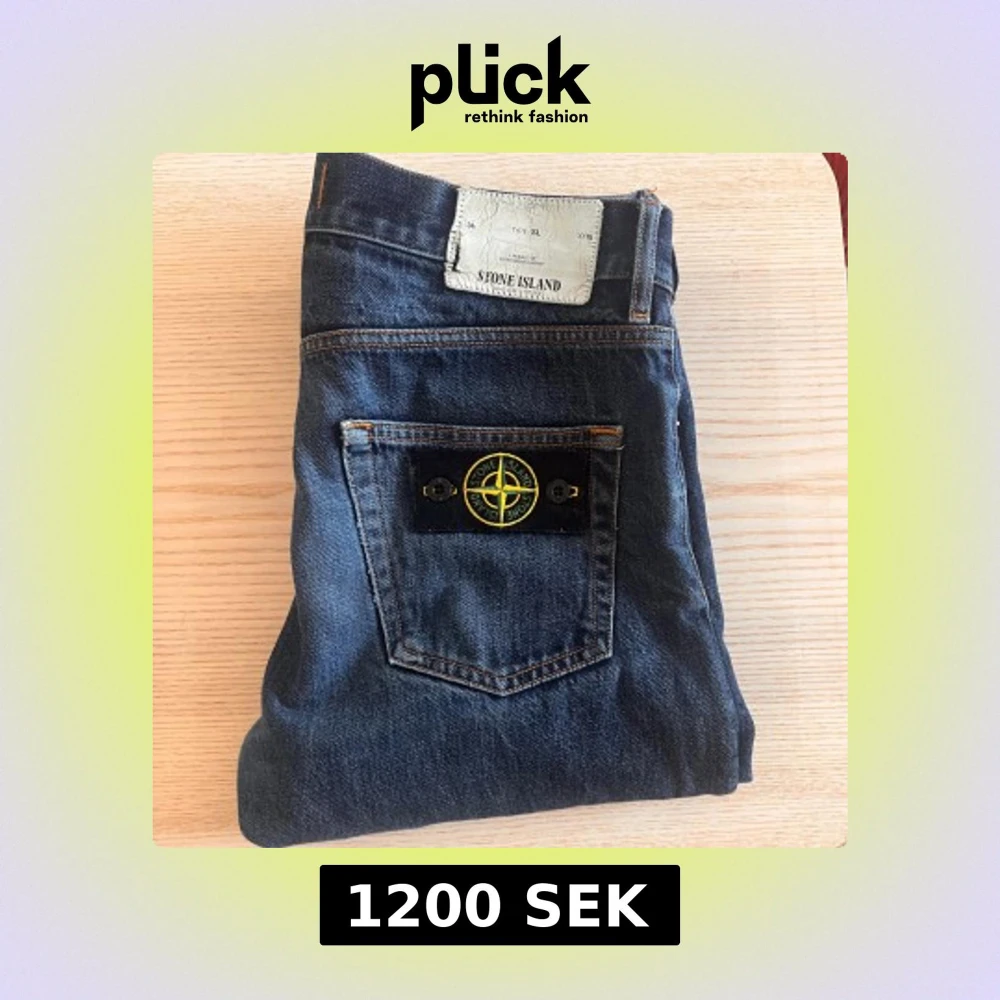 Snygga blå jeans från Stone Island med klassisk femficksdesign och ikonisk kompasspatch på bakfickan. Jeansen har raka ben. W29L34 i storlek. Priset är inte hugget i sten
