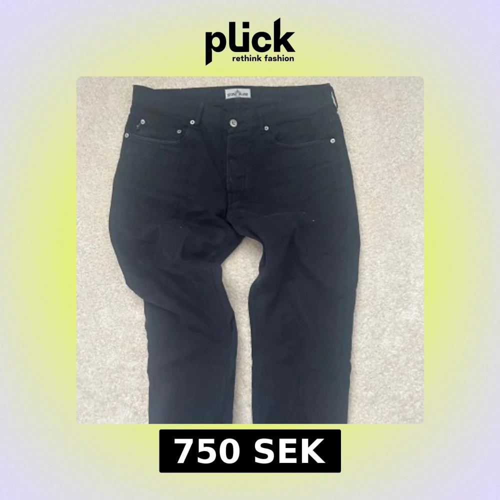 Säljer ett par mörkblå byxor från Stone Island med klassisk femficksdesign och ikonisk logotyp på bakfickan. Byxorna har normal passform och stängs med knapp och dragkedja. Perfekta för dig som gillar stilrena och exklusiva plagg.