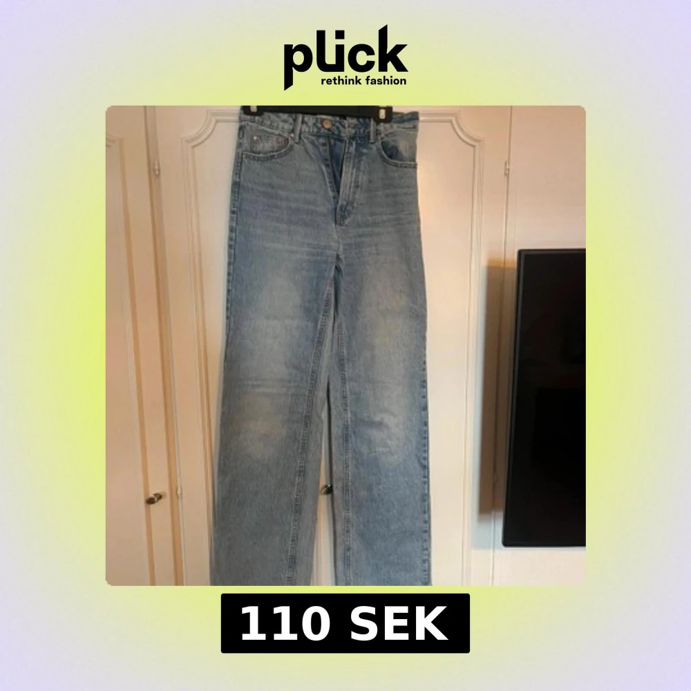 Snygga ljusblå jeans från Stradivarius i storlek 34. Modellen har hög midja och raka, breda ben för en chill och trendig look. Klassisk femficksdesign och tillverkade i jeansmaterial med ljus tvätt. Perfekta att matcha med sneakers eller boots.