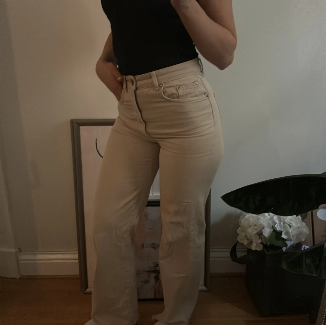Beiga jeansbyxor med hög midja och raka ben från Asos (stradivarius märke). Använda men fortfarande superfina :)