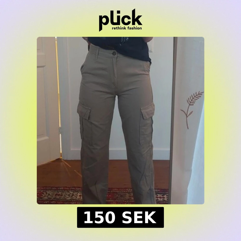 Säljer ett par beige cargobyxor med hög midja och fickor på sidorna. Från Stradivarius. Använda max ett par gånger, säljer då de är lite små på mig.