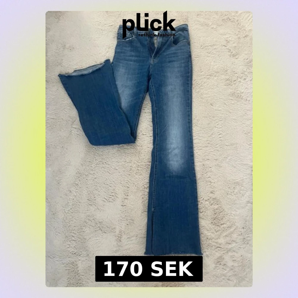 Säljer ett par blå bootcut jeans från Stradivarius i storlek 36 med hög midja. Jätte fint skick💘
