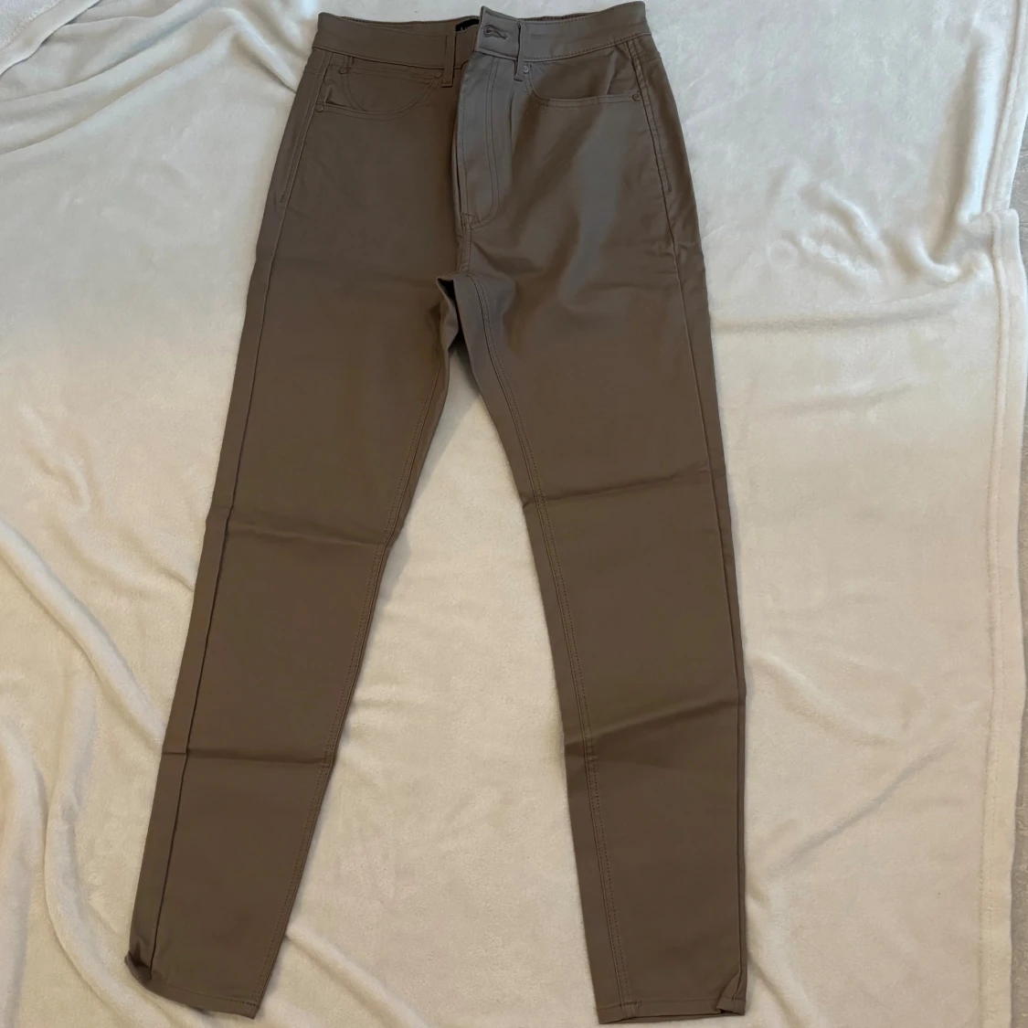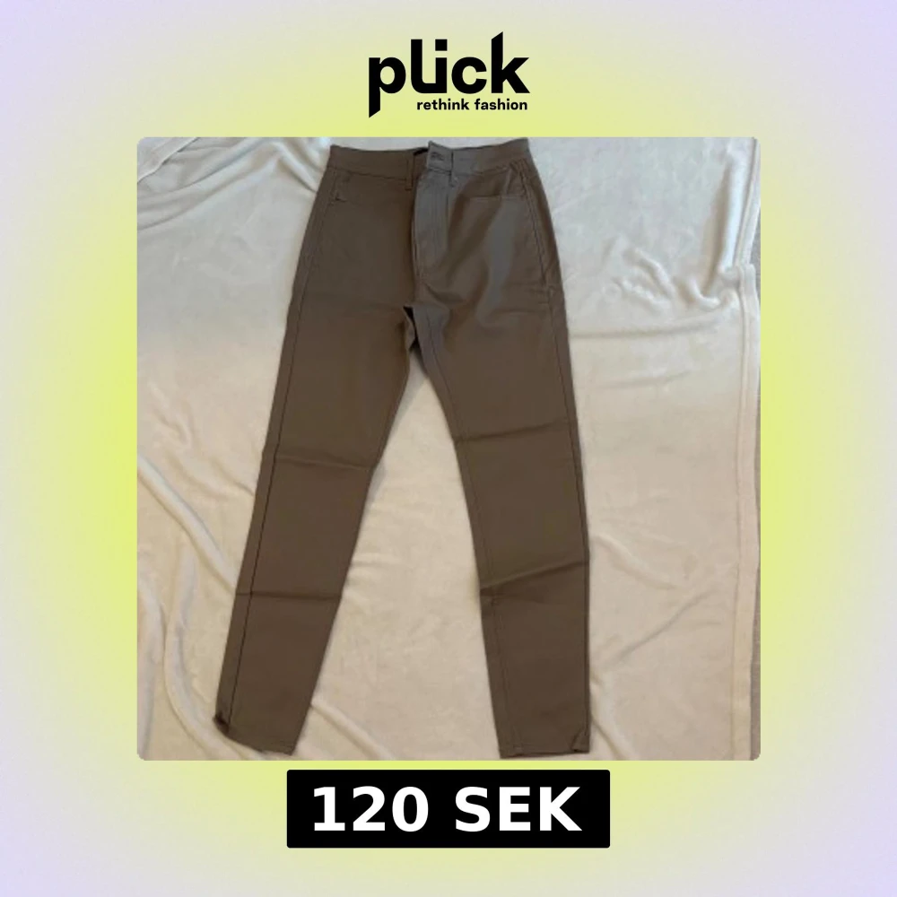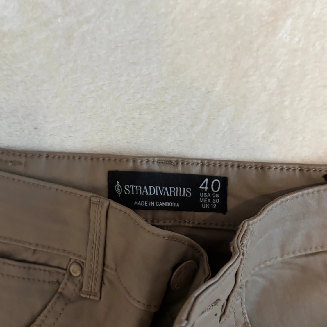 Snygga beiga byxor från Stradivarius i storlek 40. Modellen är skinny med klassisk femficksdesign och normalhög midja. Byxorna är tillverkade i ett stretchigt material som sitter tajt och bekvämt. Perfekta för en clean och stilren look.