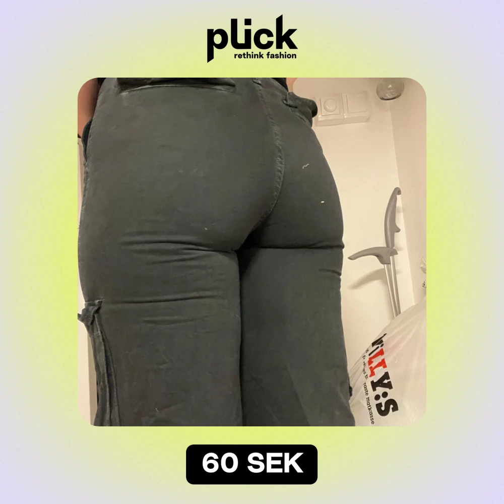 Säljer ett par svarta cargobyxor från Stradivarius i storlek 40. Byxorna har hög midja och praktiska fickor på sidorna. Perfekta för en casual look eller när du vill ha något bekvämt men stiligt. De är i bra skick och redo för nya äventyr!