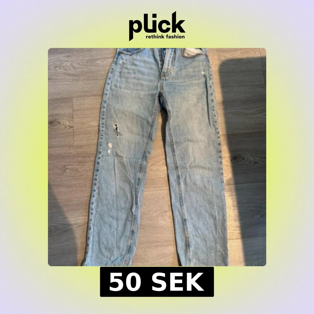 Ljusblåa raka jeans från Stradivarius med klassisk femficksdesign och slitningar på benet. Jeansen har normal passform och är tillverkade i bomull. Perfekta för en avslappnad och trendig look.