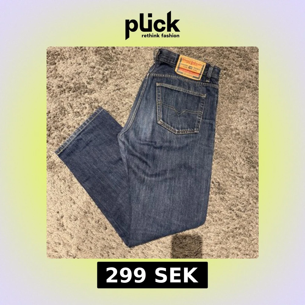 Diesel vintage jeans i mycket snygg blå tvätt. Använda några få gånger. Storleken skulle jag säga är 32/32. De sitter straight och bra över skorna.