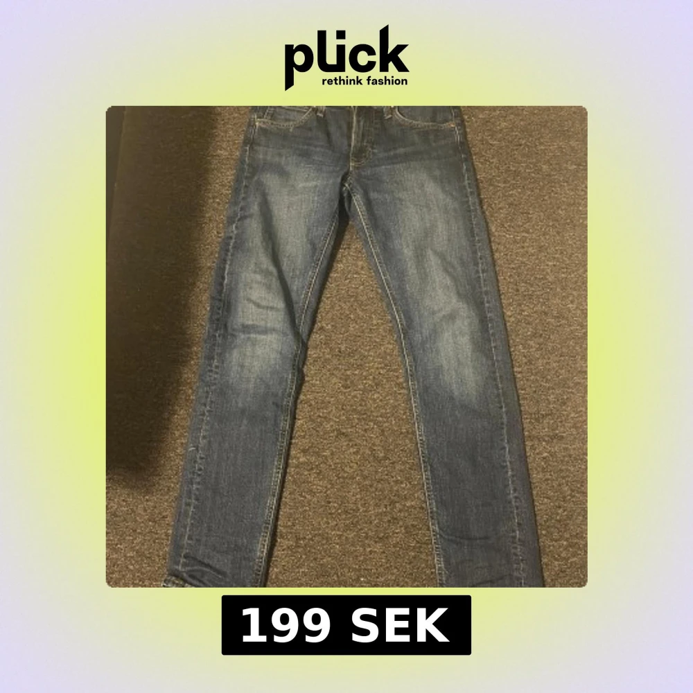 Säljer dessa mörkblåa jeans från Lee. De är i bra skick och har inte använts särskilt mycket. Straight fit. W29 L32 Hör gärna av dig vid fundering har!
