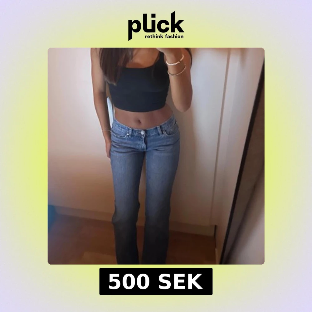 Säljer raka och lågmidjade jeans från Abrand i mörkblå färg. Använda endast 1 gång! Mått (bild 5): A-36,5cm B-80,5cm C-24cm 💙 🌸Pris kan diskuteras!!