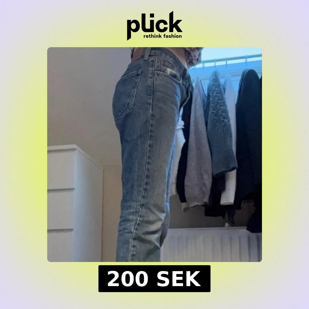 Säljer ett par klassiska blå jeans mid waist raka ben. Jeansen stängs med dragkedja och knapp.