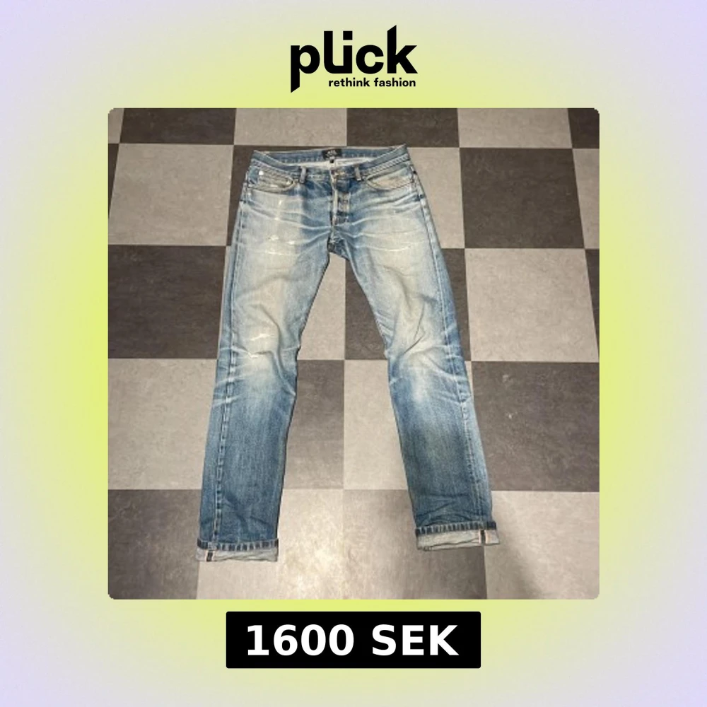 Säljer ett par riktigt feta A.P.C Petit standard med en galen tvätt jeansen är selvage och är därför i ett grymt material. Jeansen är använda i några år och har på så sätt fått denna sjuka tvätten.
