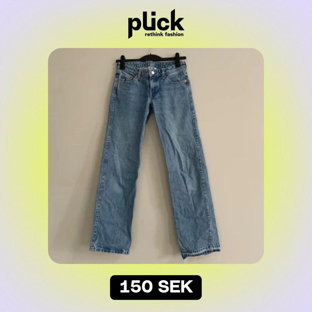 Blåa Arrow Low jeans från Weekday. De är uppsprättade på ena benet då jag försökte göra dom längre (de är tyvärr för korta för mig). Man kan göra om de till shorts eller sprätta upp andra benet också. Skriv gärna om du har några funderingar!☺️
