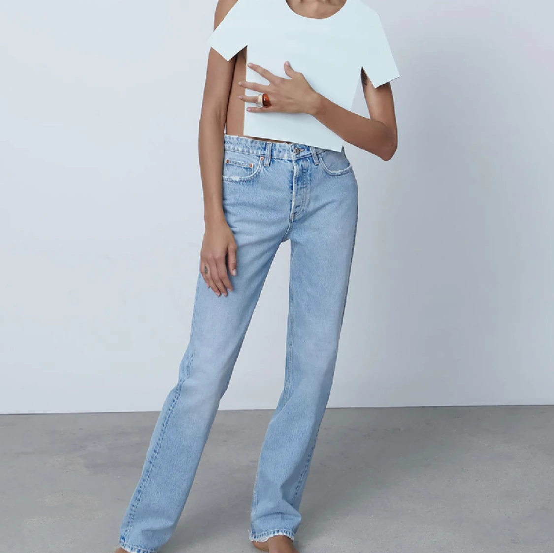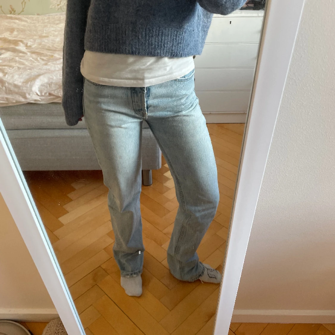 Säljer nu mina snygga ljusblåa jeans från zara i modellen Mid rise straight i storlek 32 då dem inte kommer till användning för mig. 💕 Tryck gärna på köp nu!