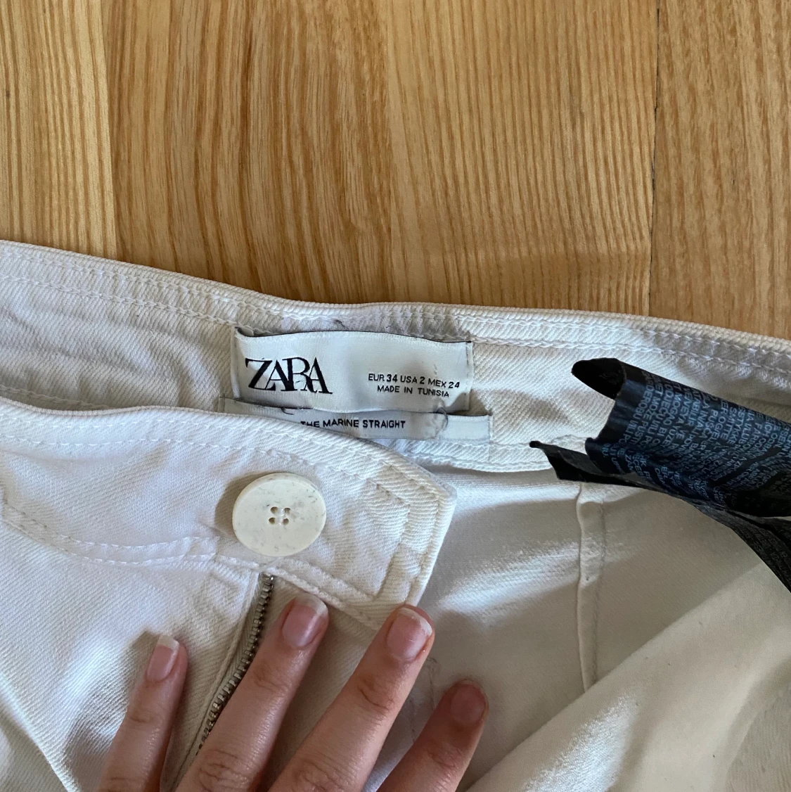 Jättejättefina jeans från zara! Köpte för 2 - 3 år sedan men endast använda 2 ggr eftersom de har blivit för små!!! Storlek 34. Jättefint skick förutom en missfärgning på en bakficka men det syns knappt, skickar bild på dm! Öppen för erbjudanden