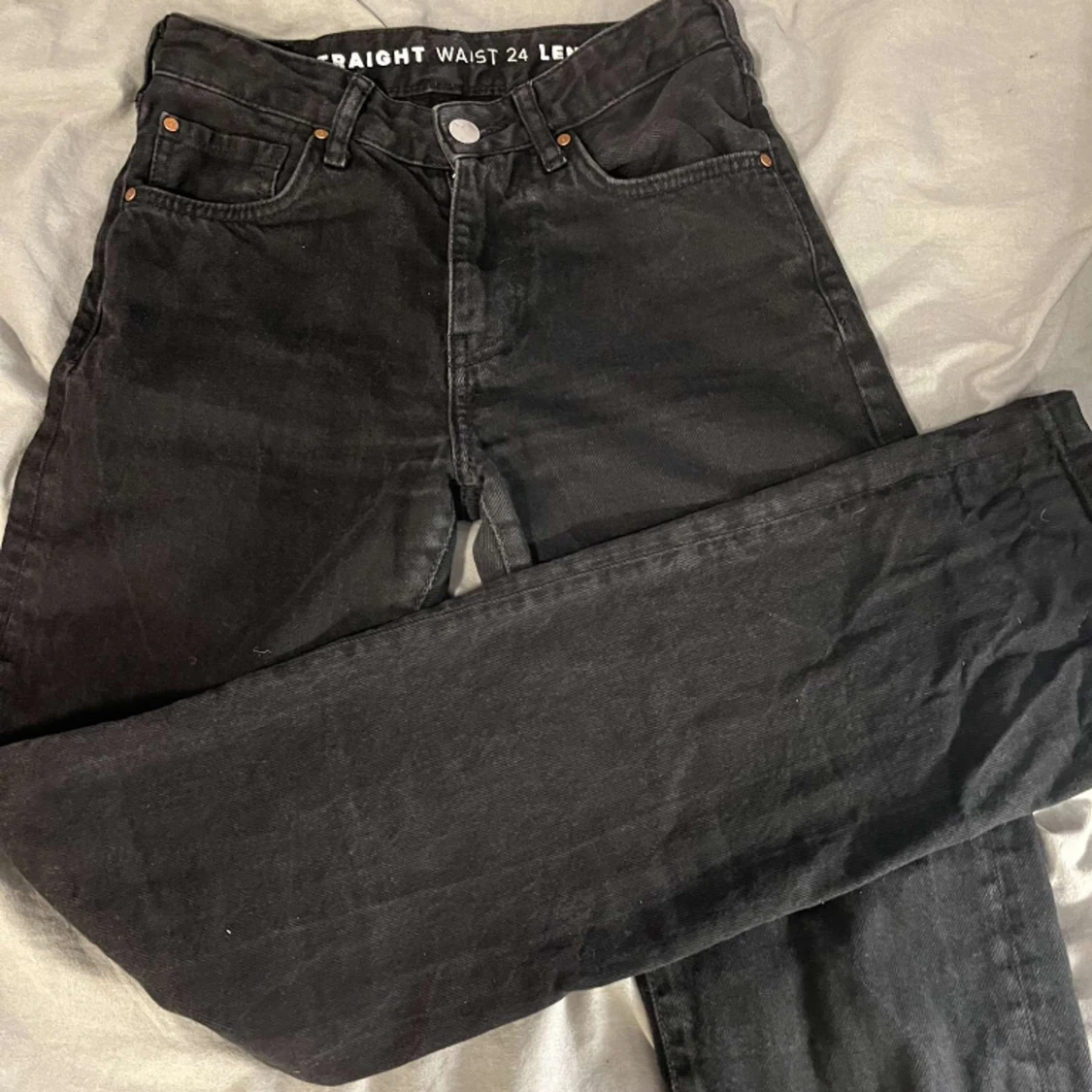 Svarta lågmidjade jeans från bik bok i modellen low straight , hör av vid frågor💘