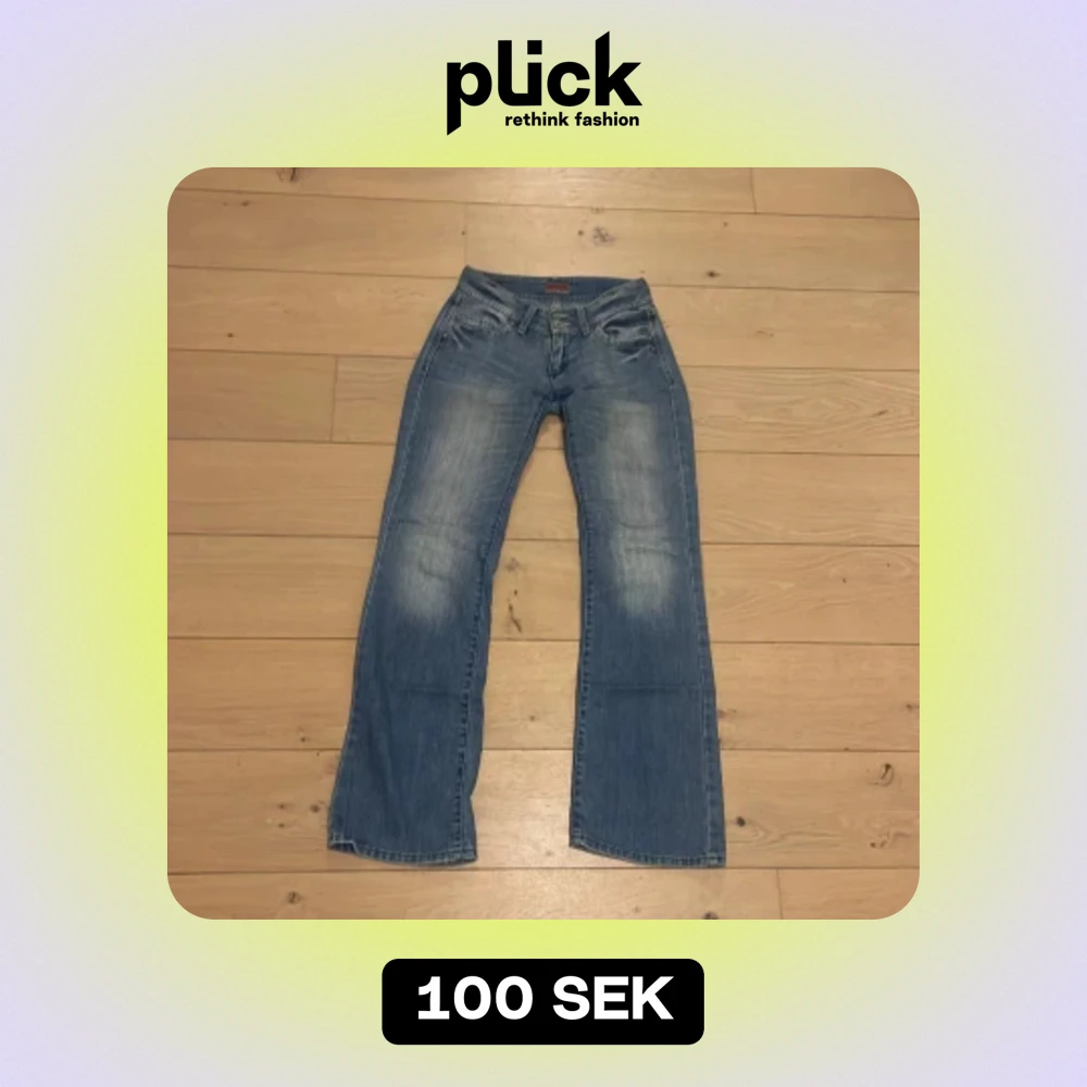 Ett par ljusblå raka/utsvängda jeans med låg midja från märket ”Big star”. Dem är i bra skick men tyvärr för små för mig. Dem är i storlek 25, längd 32.