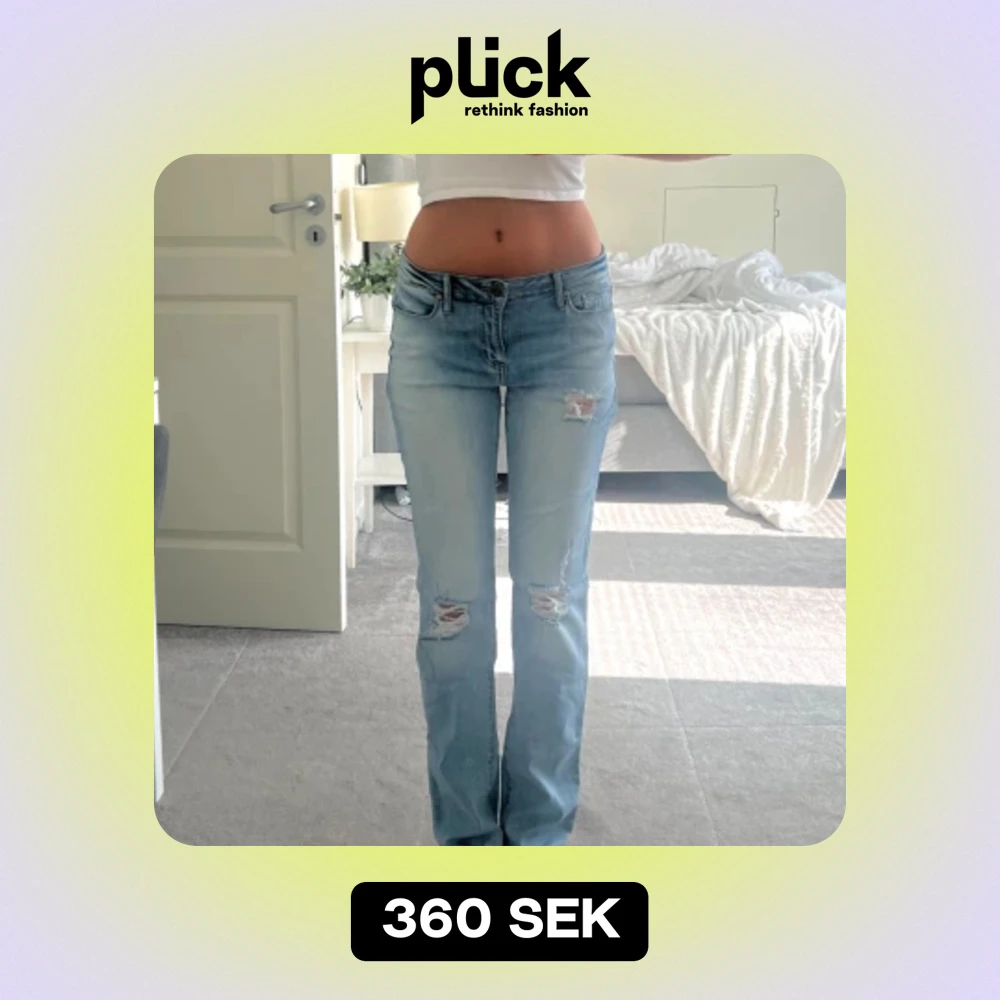 Lågmidjade jeans med hål/slitningar. Från Calvin Klein och säljer då jag tycker de är liite korta på mig, jag e 168. Midjemått 83 o innerbenslängd 81😊🙌🏼💕💕