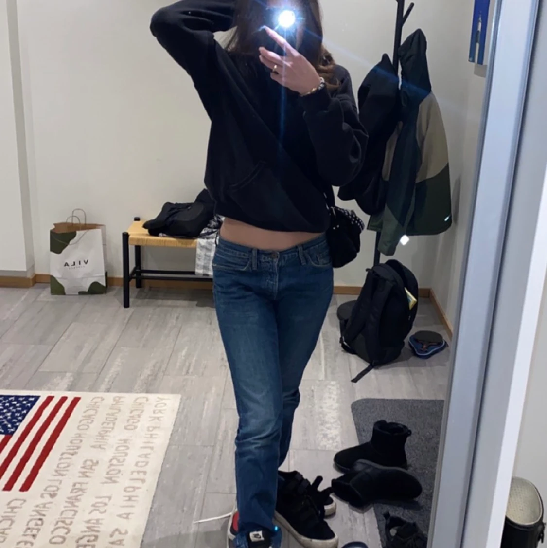 Lågmidjade jeans i en mörkblå denim från replay, skulle säga att dom är storlek medium men passar på mig som är en S oftast och 175 cm lång. På mig sitter dom lite större. Ordinarie pris ligger runt 1000kr !Obs!Frakt står du för💞