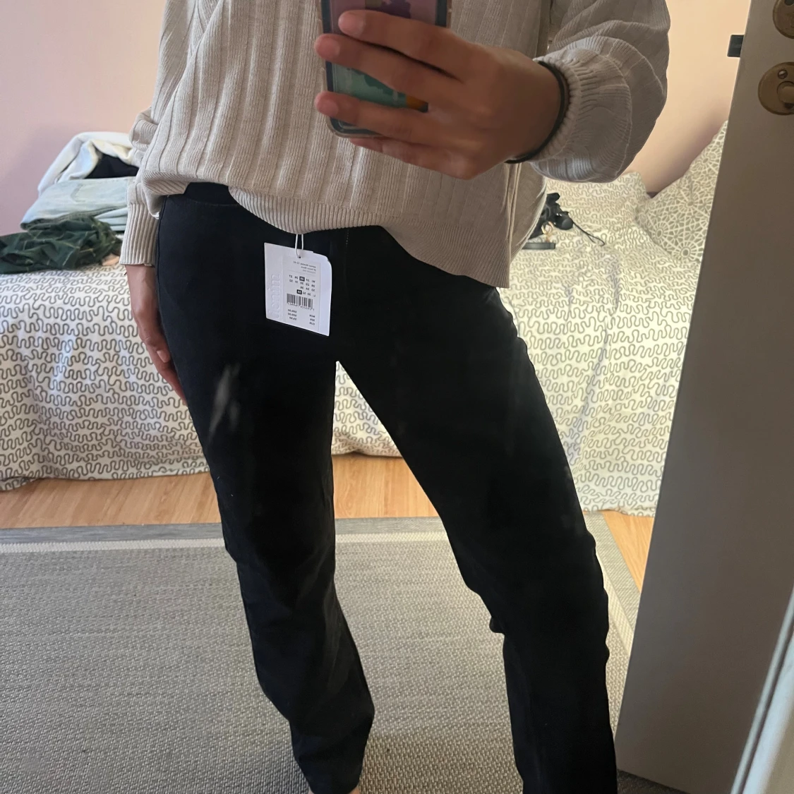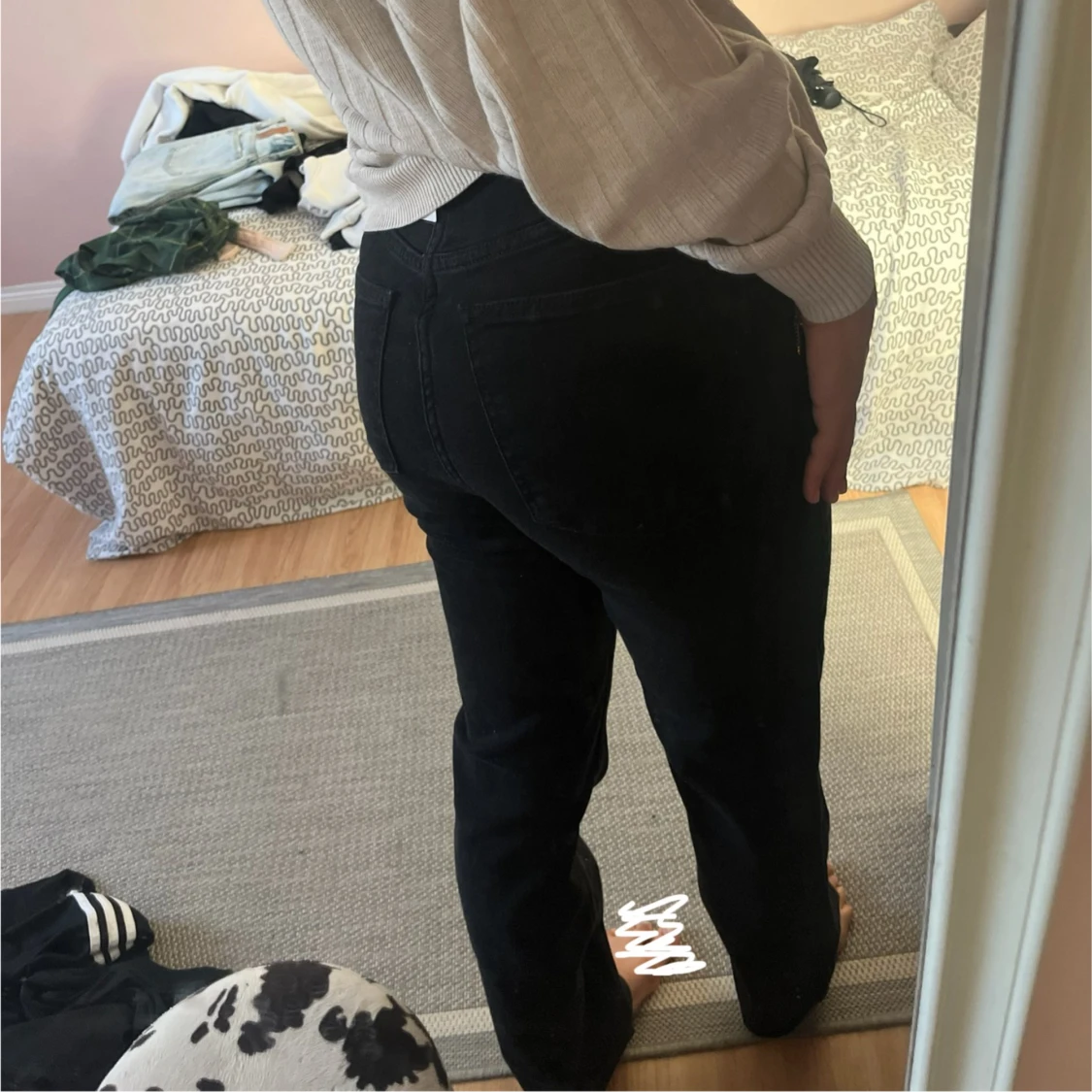 Fina svarta straight leg jeans, stl W25 L34 skulle säga S. Helt nya jeans med prislappen på, köpta från BikBok för 599kr😊