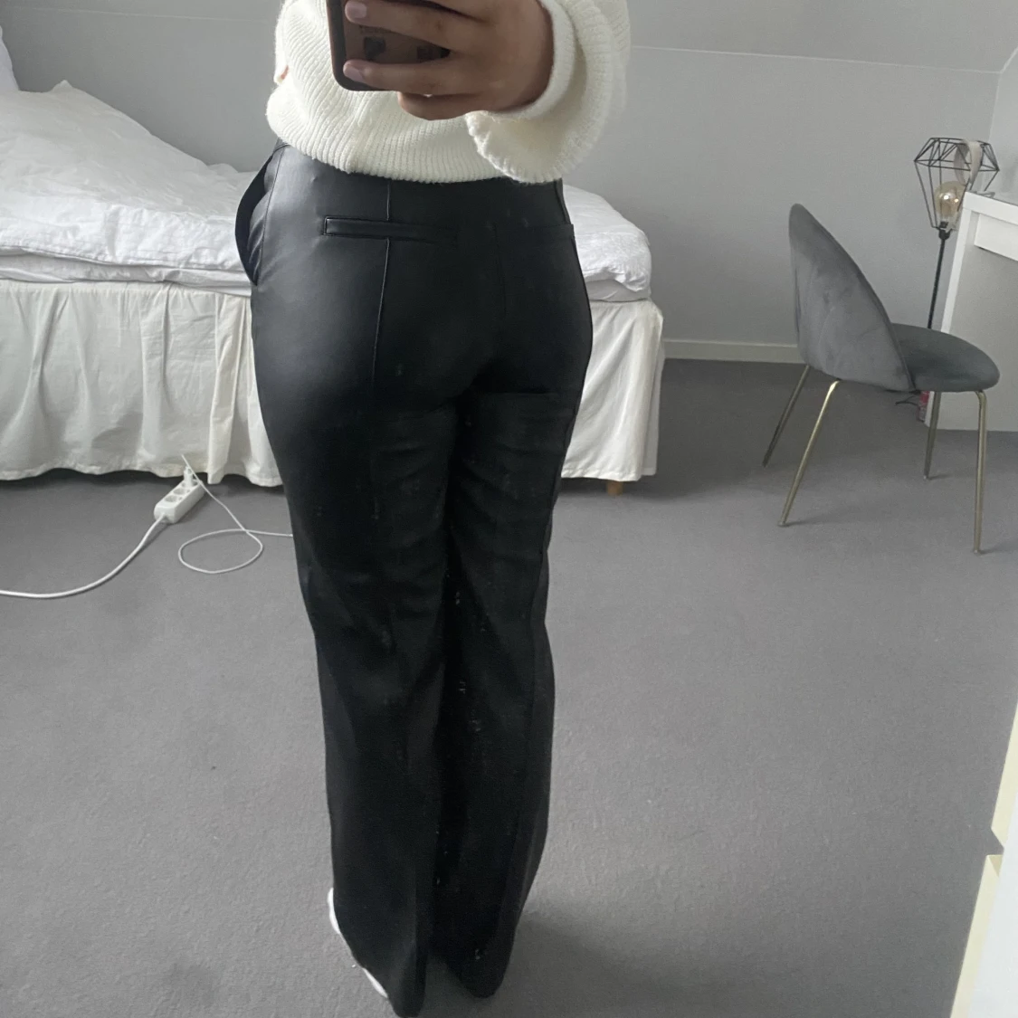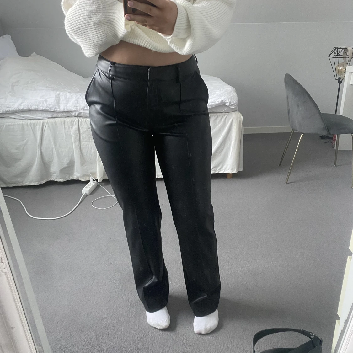 Säljer dessa supersnygga och supersköna skinnbyxor från na-kd! Säljer dem då det inte är min stil och de kommer inte till någon användning. Använda ett fåtal gånger så de har bra skick. Nypris var 500kr Frakten ingår i priset!