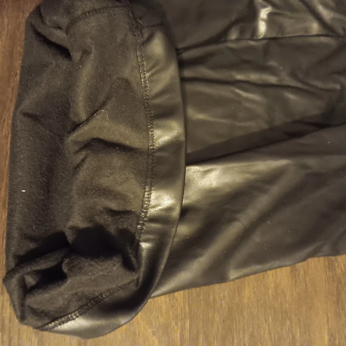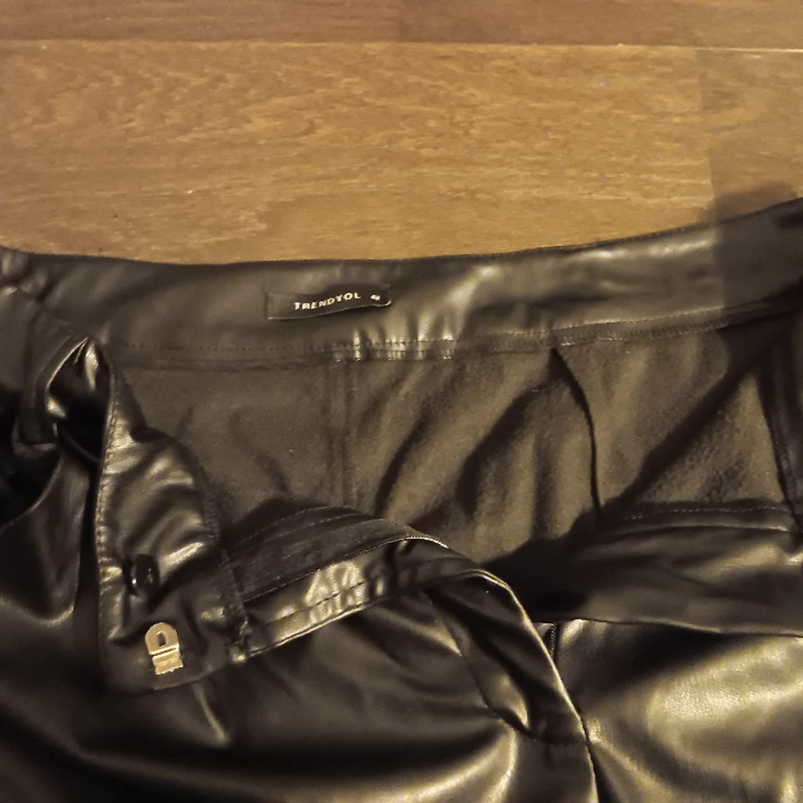 Faux-läderbyxor från Zalando. Säljer pga använder aldrig. Foder inuti. Stora i storlek, oversize, sitter löst på kroppen.