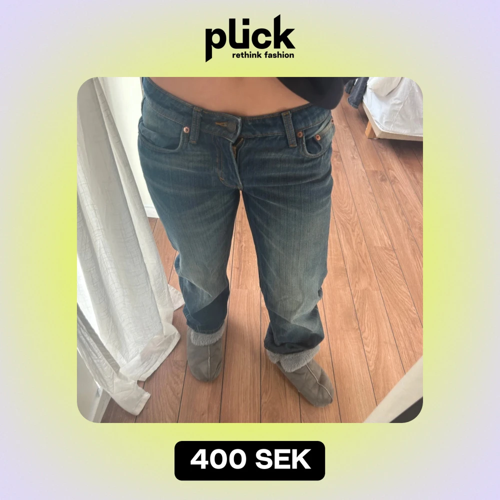 Säljer ett par blå jeans. Jeansen har en jätte snygg tvättad look. Perfekta för både höst och vår! Orginalpris är 590kr.