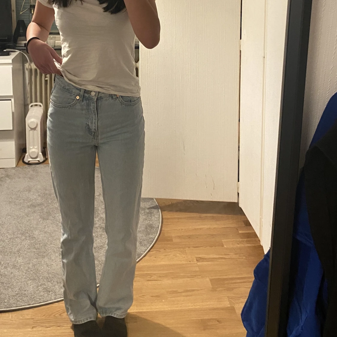 Säljer dessa supersköna, ljusblå jeansen från Weekday i modellen: Voyage. De är högmidjade, raka i benen och är i storlek W26 L30.💙jag är 164 cm lång.