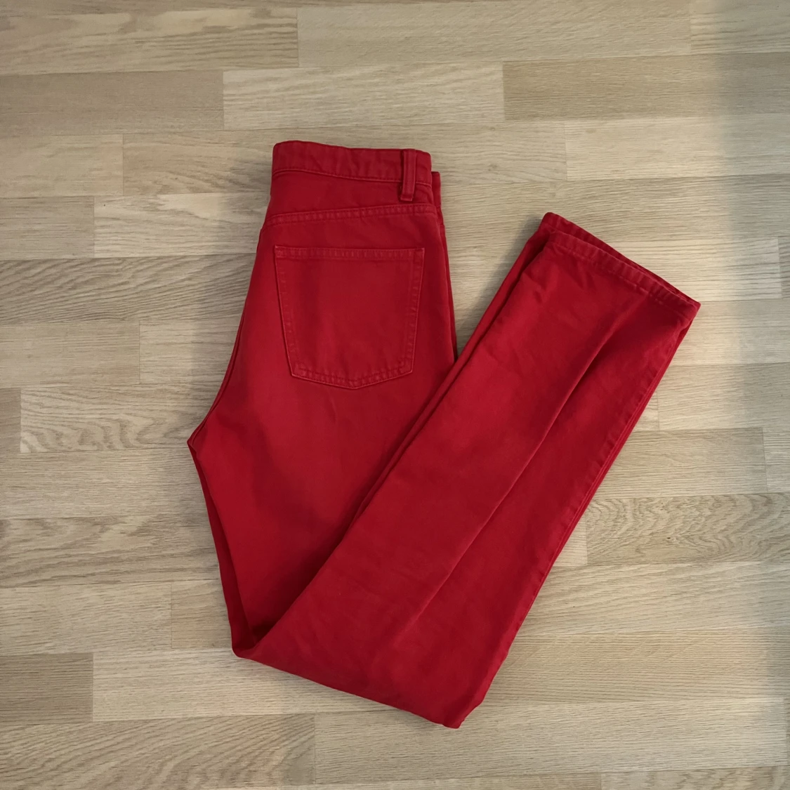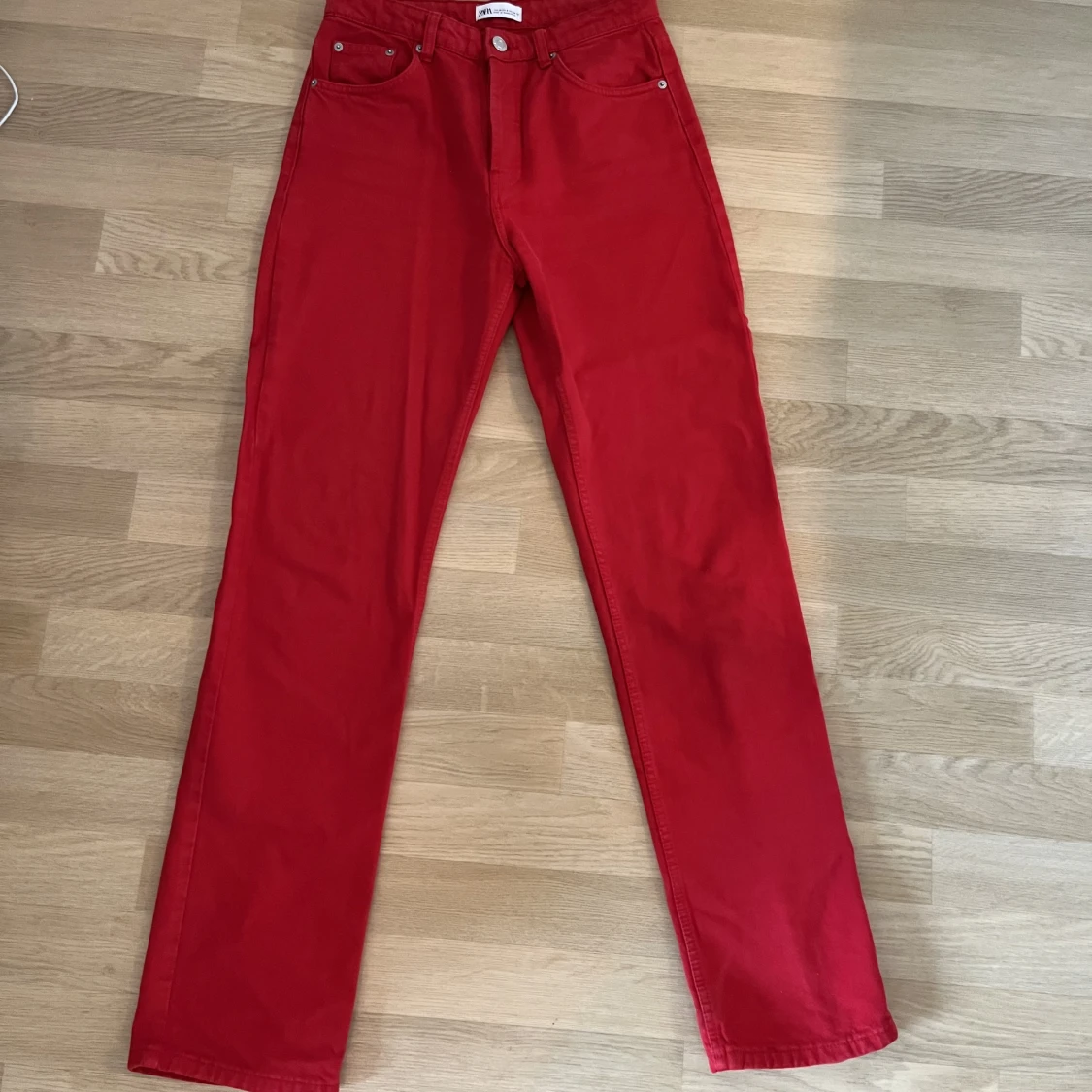 Zara röda jeans. Mid waist, långa raka ben. Använd ett fåtal gånger, nyskick. Storlek 38.