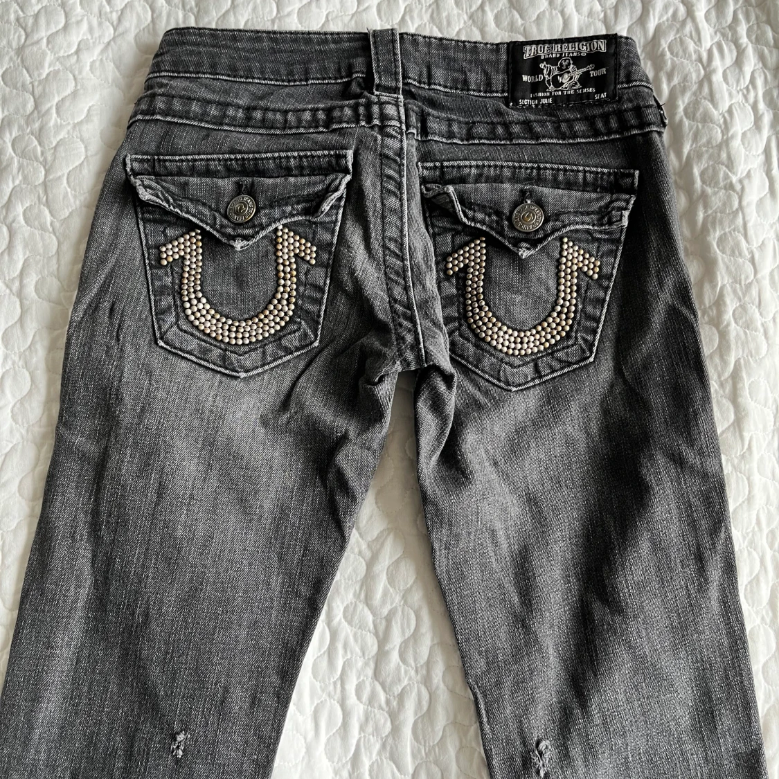 Säljer mina absoluta favorit jeans!! De är lågmidjade och har supercoola detaljer vid fickorna! Skriv till mig för frågor eller fler bilder! (De har dock två små hål vid låren men det är inget man ser!)(Säljer två par till!!💗💗)