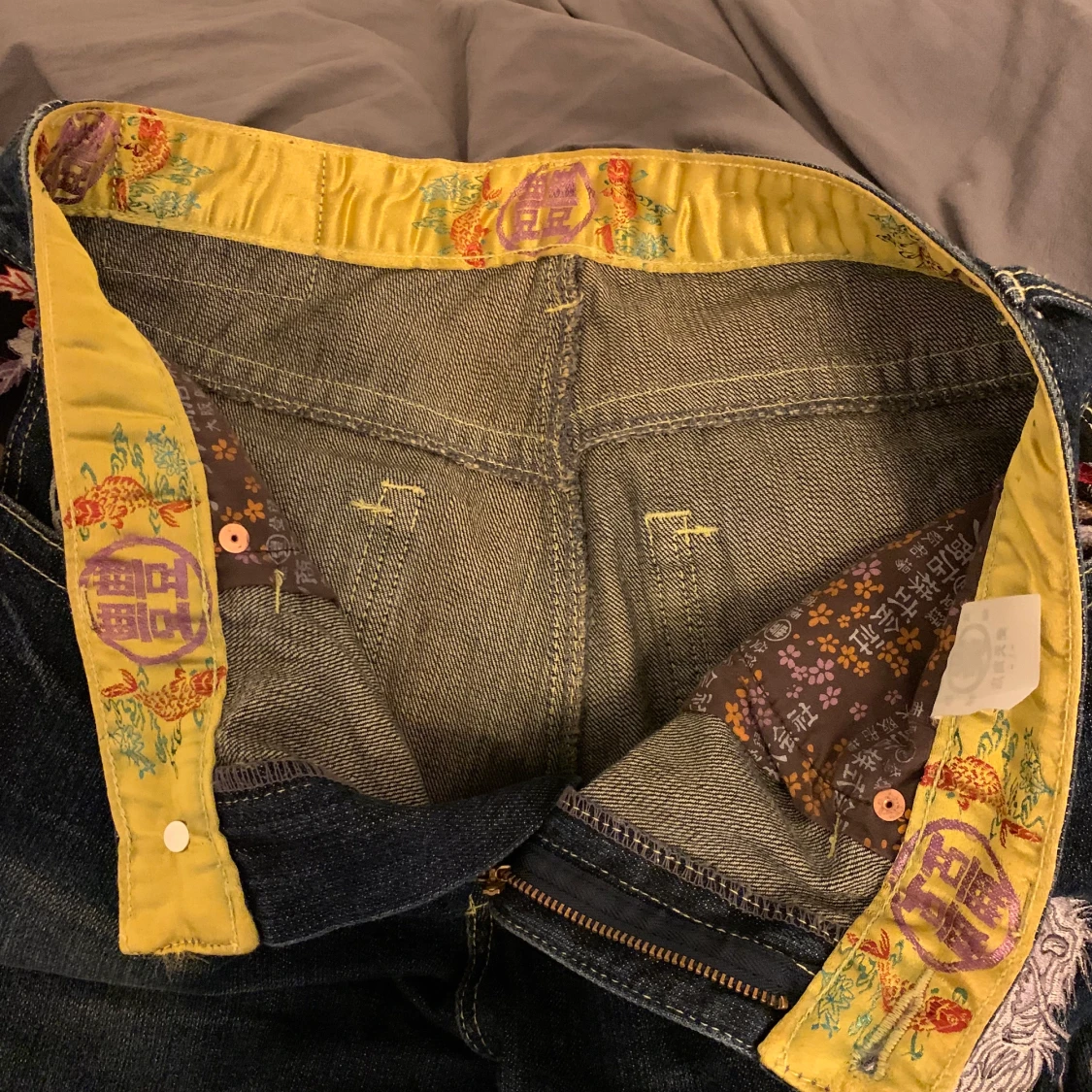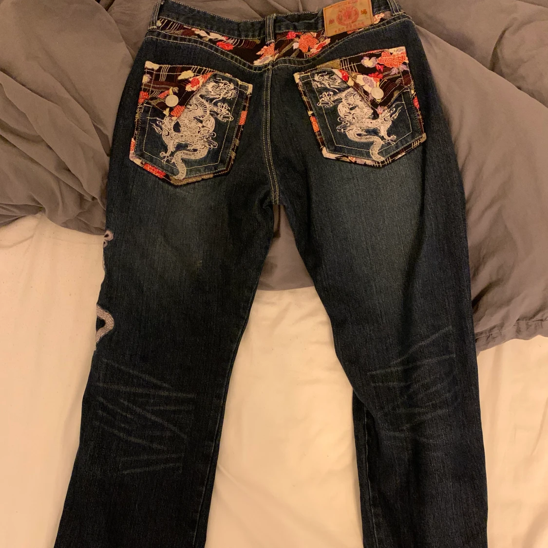 Ett par vintage baggy jeans med japansk tema. Helt nya 10/10 skick 32x34