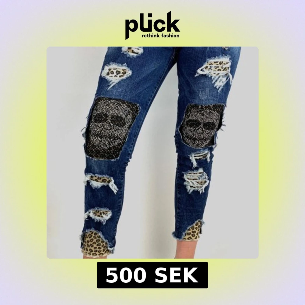 Helt nya stretchjeans med tuffa detaljer. Storlek M/38.