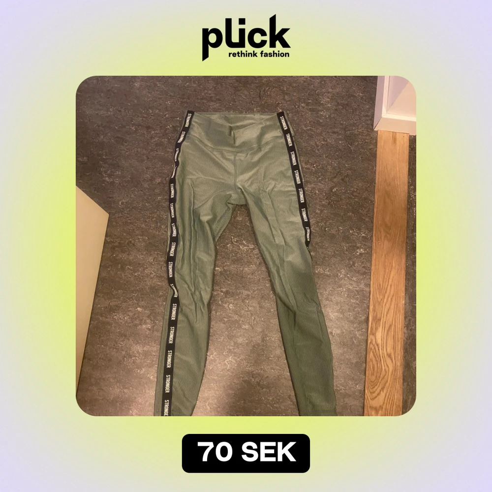 Säljer ett par gröna leggings från Stronger'. De är tighta och perfekta för träning. Materialet känns stretchigt och bekvämt. Aldrig använda. Storlek L men känns mindre