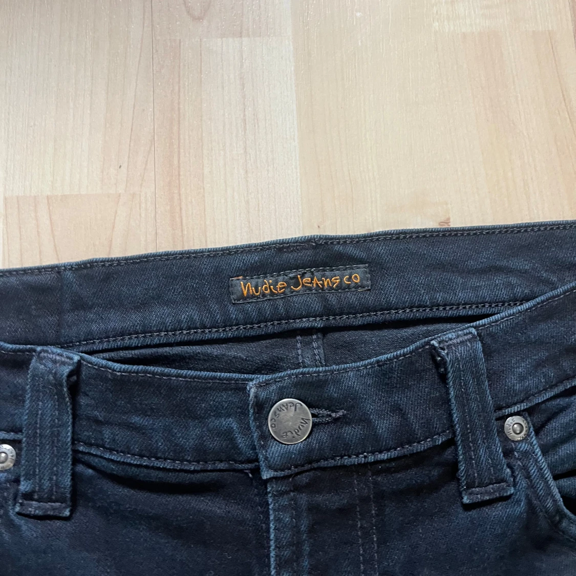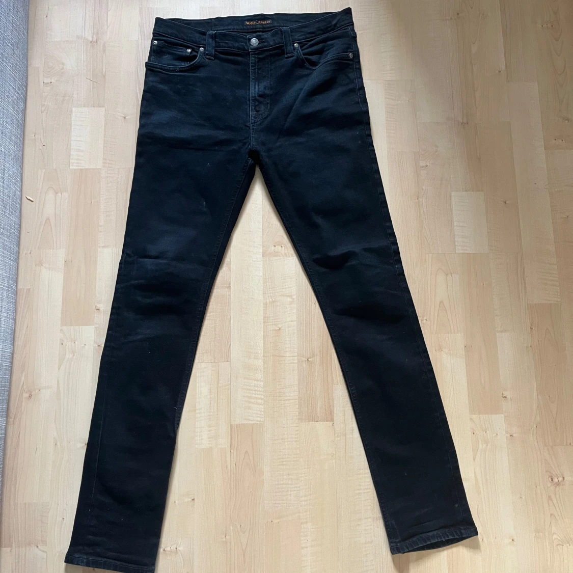 Svarta jeans från Nudie Jeans med klassisk femficksdesign och snygga svarta sömmar på bakfickorna. Modellen är skinny fit med normal midja och tillverkad i stretchig bomull. Perfekta för dig som gillar en smal siluett och stilren look.