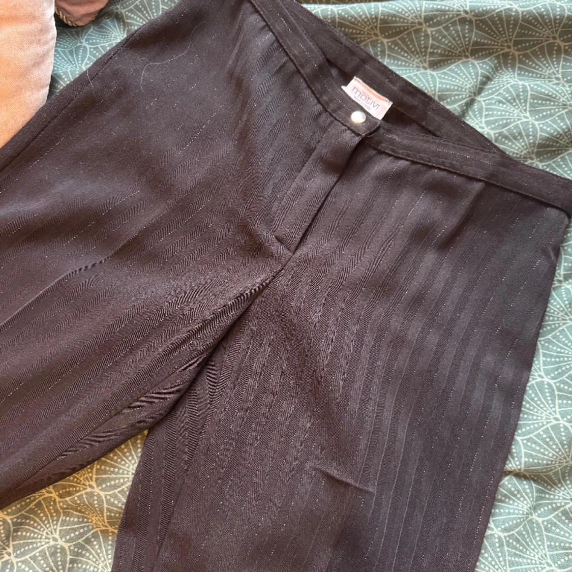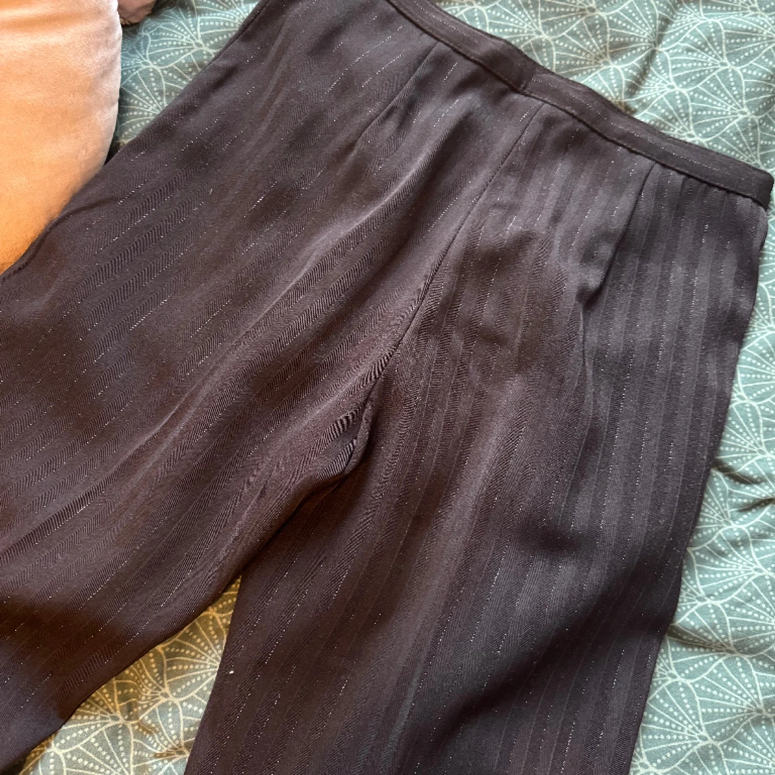 Tyvärr har mina gamla favvo kostymbyxor blivit försmå för mig! As snygga och unika köpta vintage😊 jag är storlek s/m nu så skulle säga att dom är storlek xs/s. Tyvärr har jag inga bra bilder när dom sitter på då jag inte kan stänga dom längre!