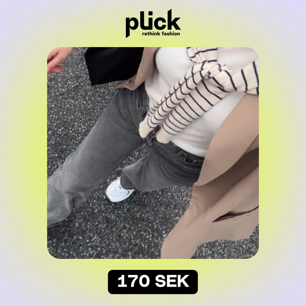 Säljer ett par snygga grå jeans i rak modell och sköna. De är högmidjade, använd 1 gång. Jag är 173cm.