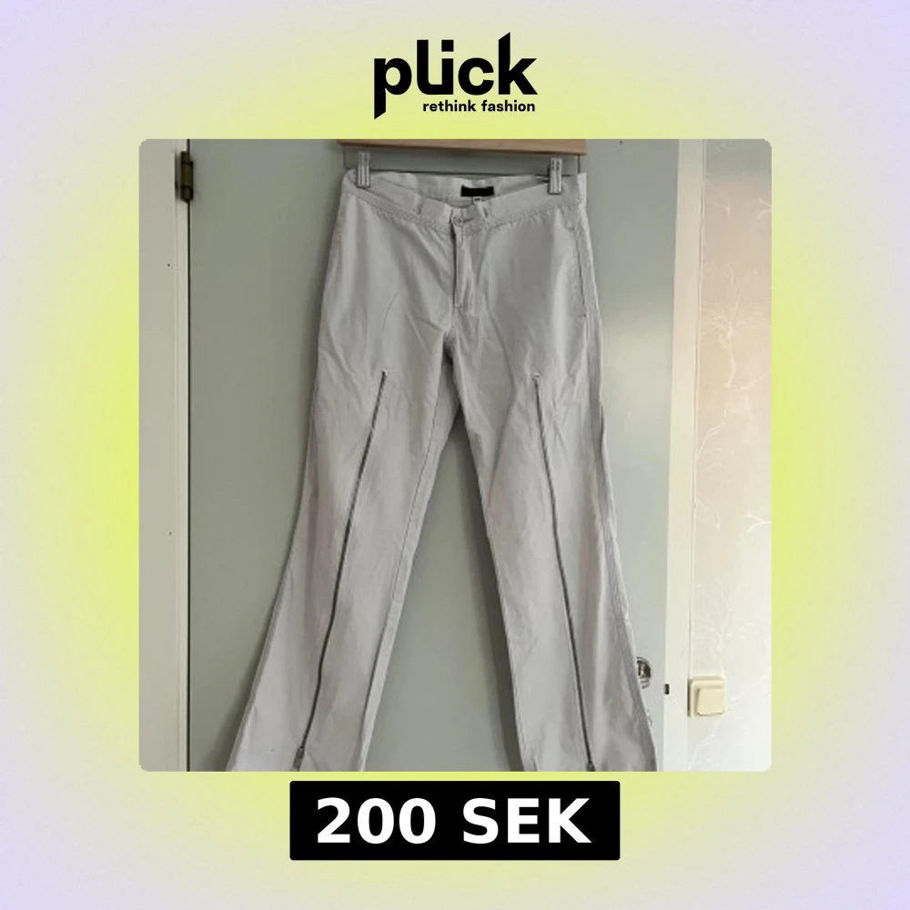 Vita Y2K byxor med dragkedje detalj i strl 32 med fungerande fickor fram och bak. Ett unikt stable piece till garderoben!