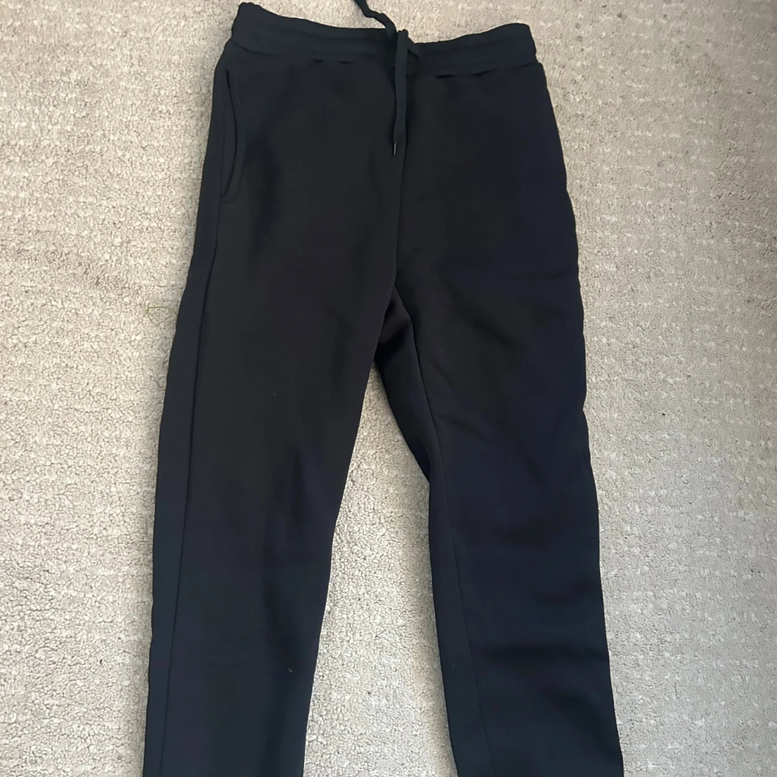Svarta mjukisbyxor i mjukt material med dragsko i midjan och sidofickor. Perfekta för chill dagar eller när du vill vara bekväm. Klassisk rak passform och enkel stil som funkar till det mesta.