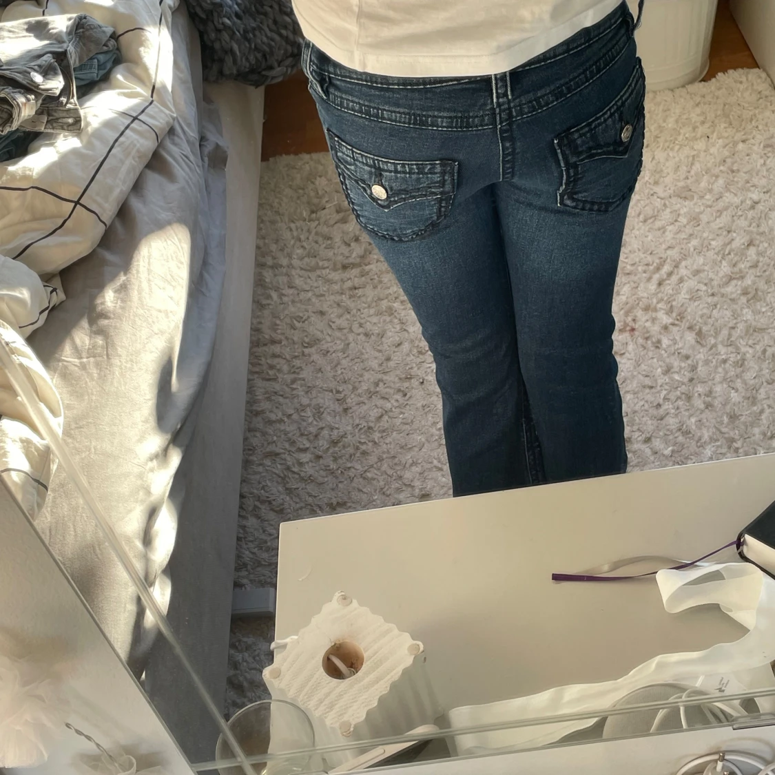 Snygga mörkblå jeans från Gina Tricot med låg midja och boodcut. Jättefina fram och bak fickor! Dessa jeans är perfekta inför hösten!💓
