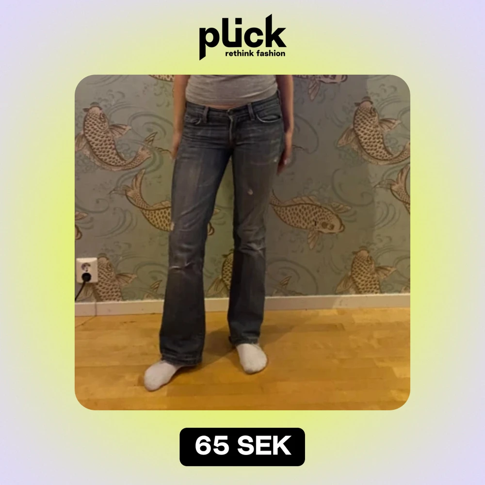 Lågmidjade jeans i ganska slitet skick men älskar hålen och tvätten på byxan. Jag har Size 27 men dessa passar på mig. Kontakta för mer information. Defekter=sista sliden. Jag är 164