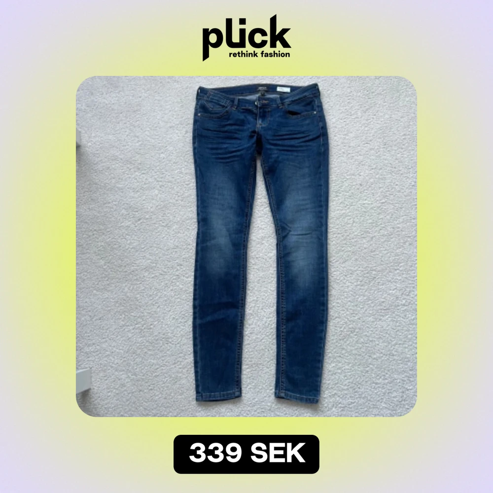 Blåa lågmidjade jeans i nyskick från ONLY ”Blue Denim anne 1995”. Coral Super Low Skinny. Använda 2 gånger. Storlek 27/30 ,ordinare pris 449