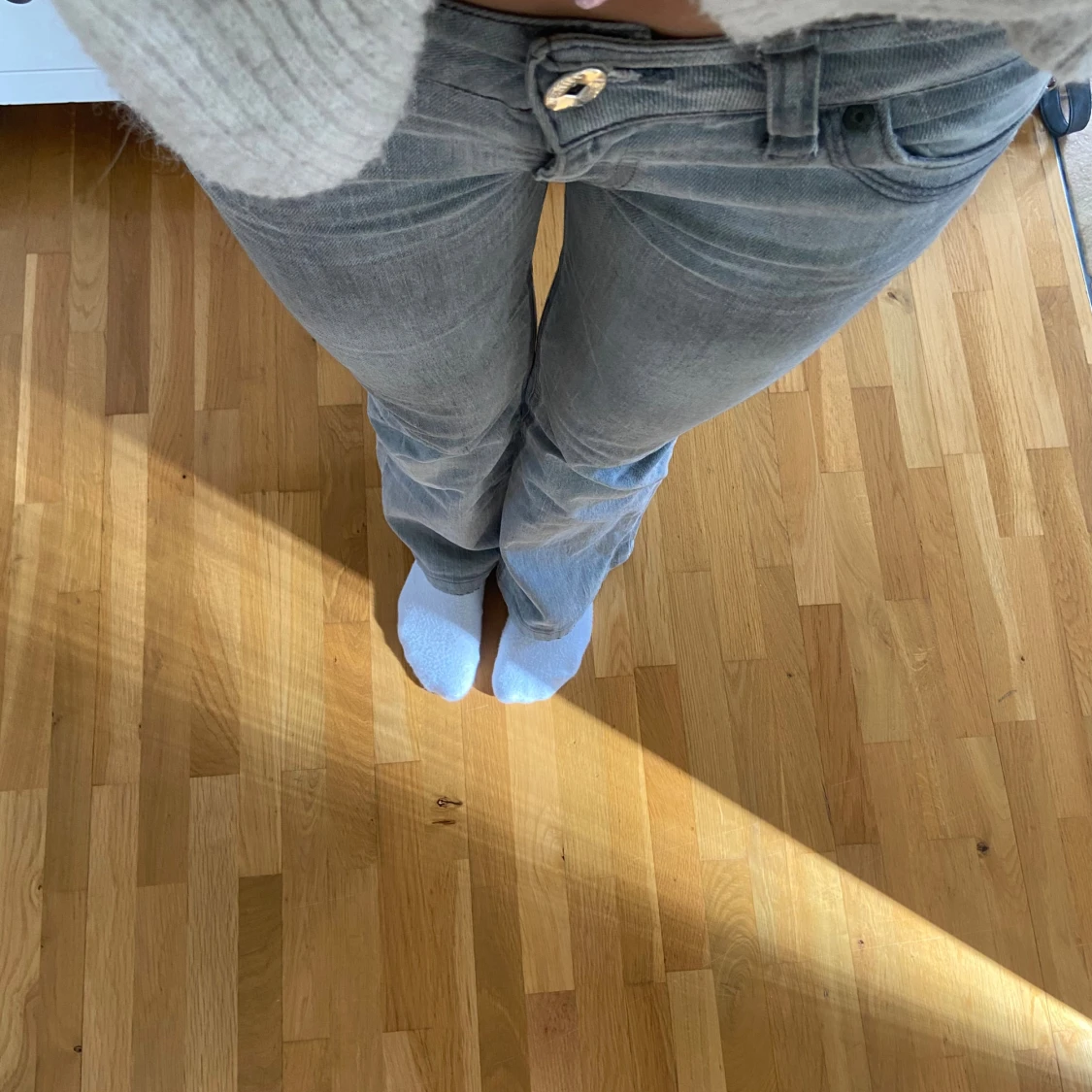 Grå bootcut jeans med låg midja