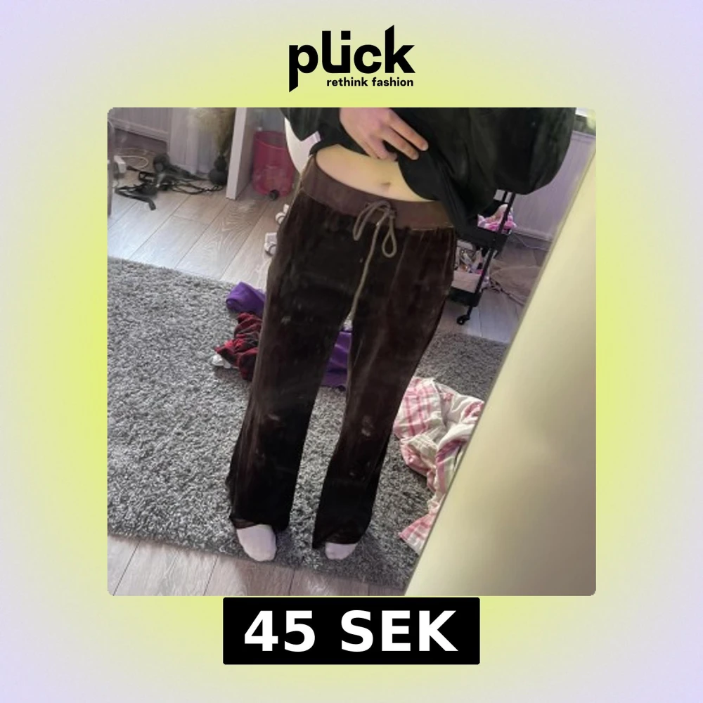 Säljer ett par bruna mjukisbyxor i mjuk velour med bred resår och dragsko i midjan. Byxorna har raka, lite vidare ben och är perfekta för en avslappnad stil. Superbekväma och snygga att chilla i.