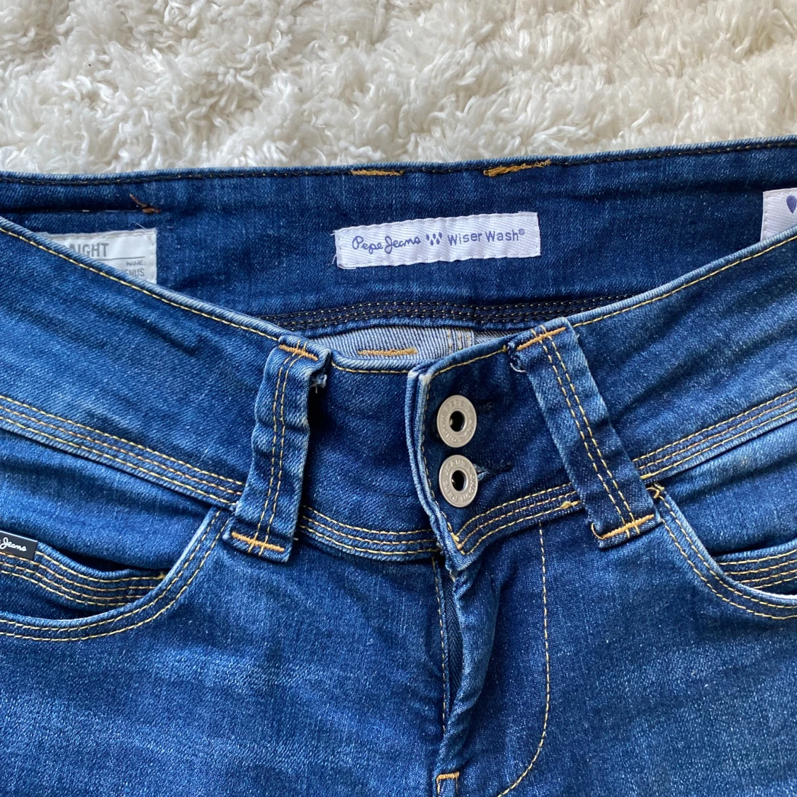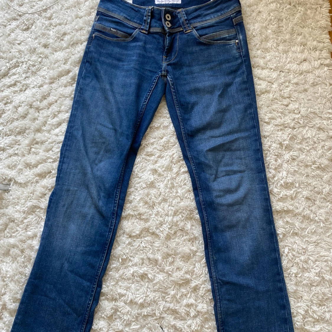 Jag säljer dessa supersnygga pepe jeansen som är så fina nu till skolstarten, modellen är dessutom slutsåld i nästan alla storlekar på nätet! Innerbenslängd : 73 cm och midjem ått mittöver: 35 cm. Jeans materialet är väldigt stretchigt! Nypris 1185kr