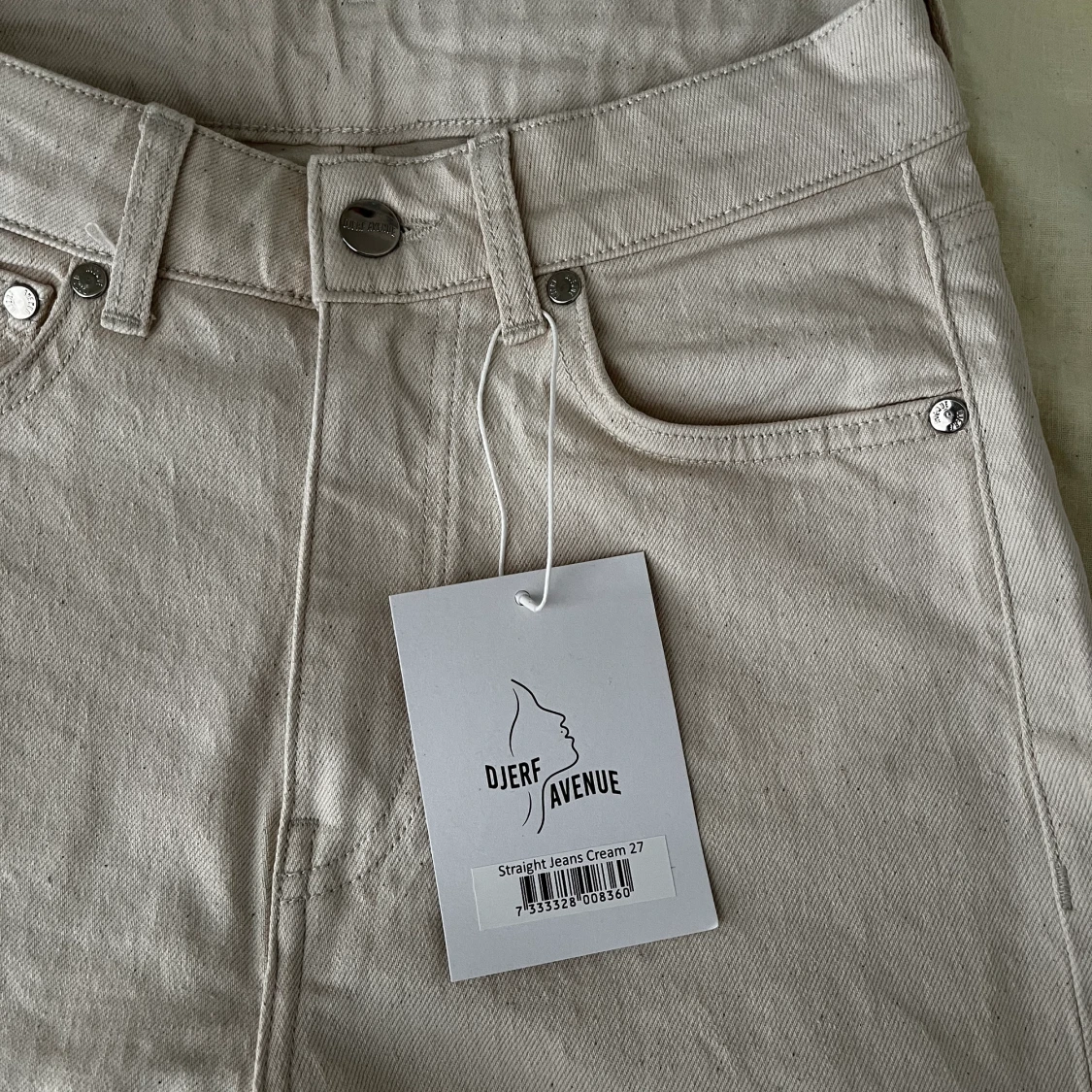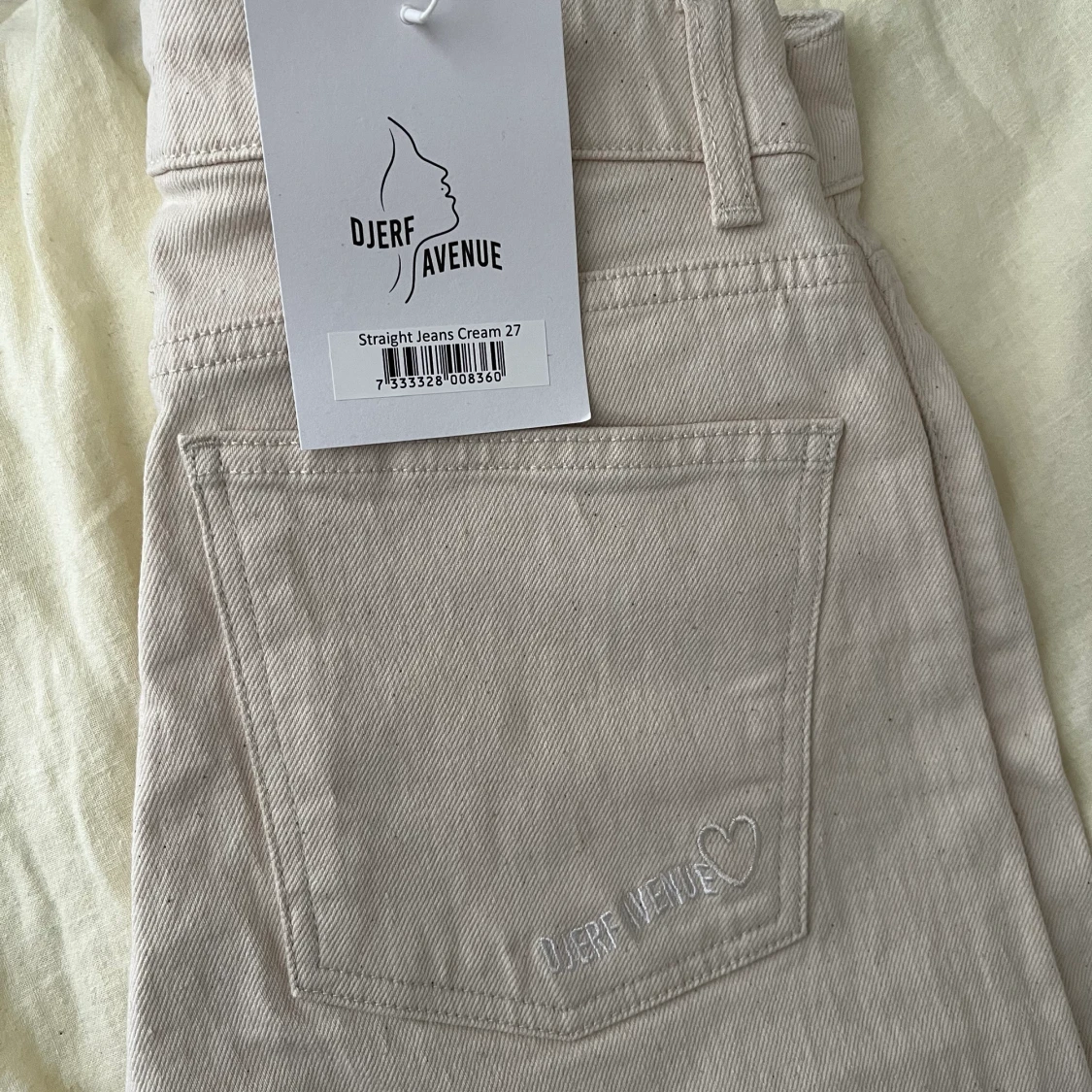 Helt oanvända jeans i färgen cream från Djerf Avenue 💓 storlek 27, men aningen små i storleken.